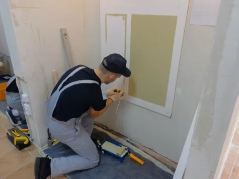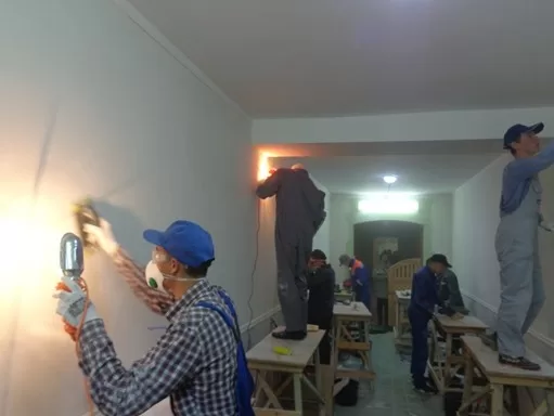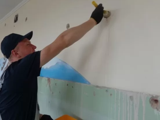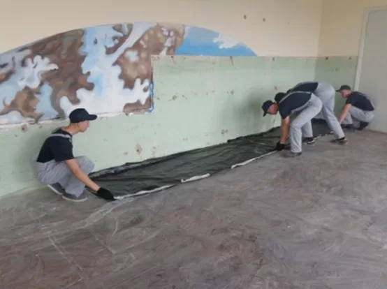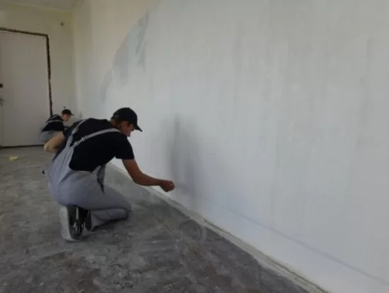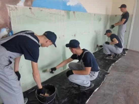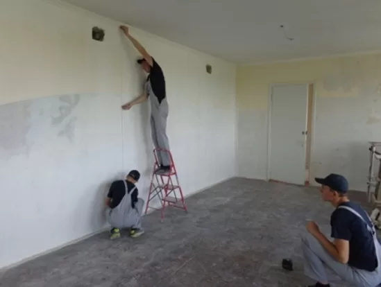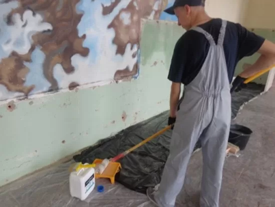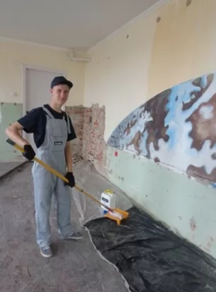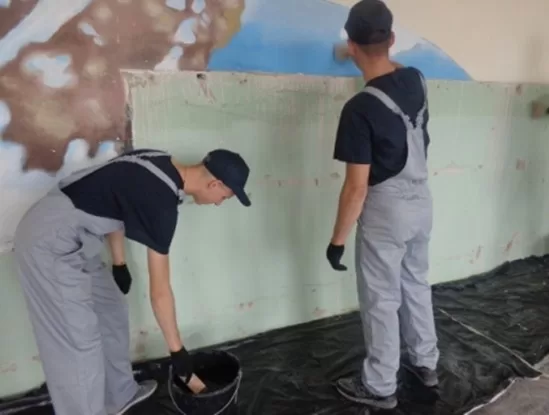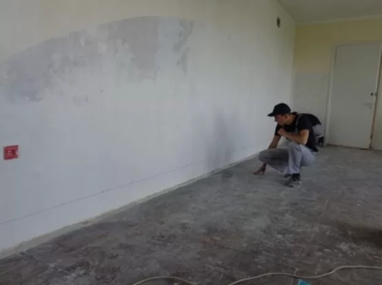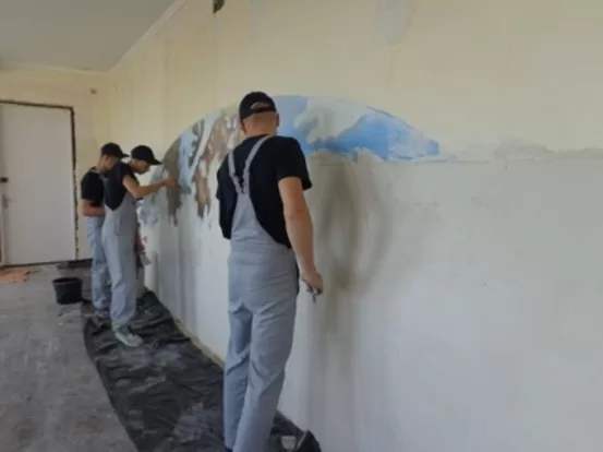 Виконано такі роботи: Змивання набілу зі стін; Розшивання тріщин; Грунтування