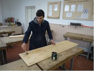 Команда нашого училища виконувала конкурсне завдання по декоруванню готових дерев’яних виробів, які прикрасили інтер’єр навчального корпусу.