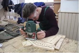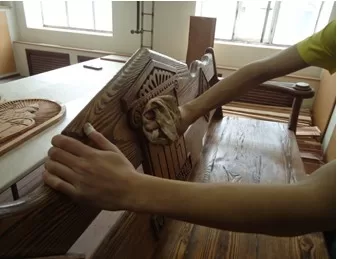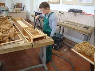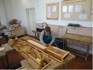 Для участі в конкурсі декорування дерев’яного виробу були виготовлені два вироби, а саме, лавка декоративна різьблена та різьблений дверний портал для обрамлення входу в музей дипломних робіт учнів відділення художніх ремесел Луцького ВПУ будівництва та архітектури.