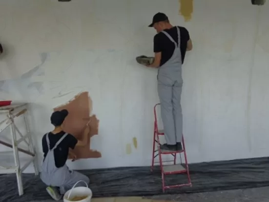 Використано такі матеріали ТМ «ŚNIEŻKA»: ACRYL–PUTZ® ST10 START ШПАКЛЮВАЛЬНА ГЛАДЬ 2 В 1 СТАРТ +ФІНІШ; ACRYL–PUТZ® FX23 FLEX ЕЛАСТИЧНА МАСА ДЛЯ РЕМОНТУ 3 BMICTOM СКЛОВОЛОКНА; ACRYL–PUTZ® FS20 FINISZ ; ACRYL–PUTZ® GU40 ПОЛIМEРНА ГРУНТОВКА УНІВЕРСАЛЬНА.