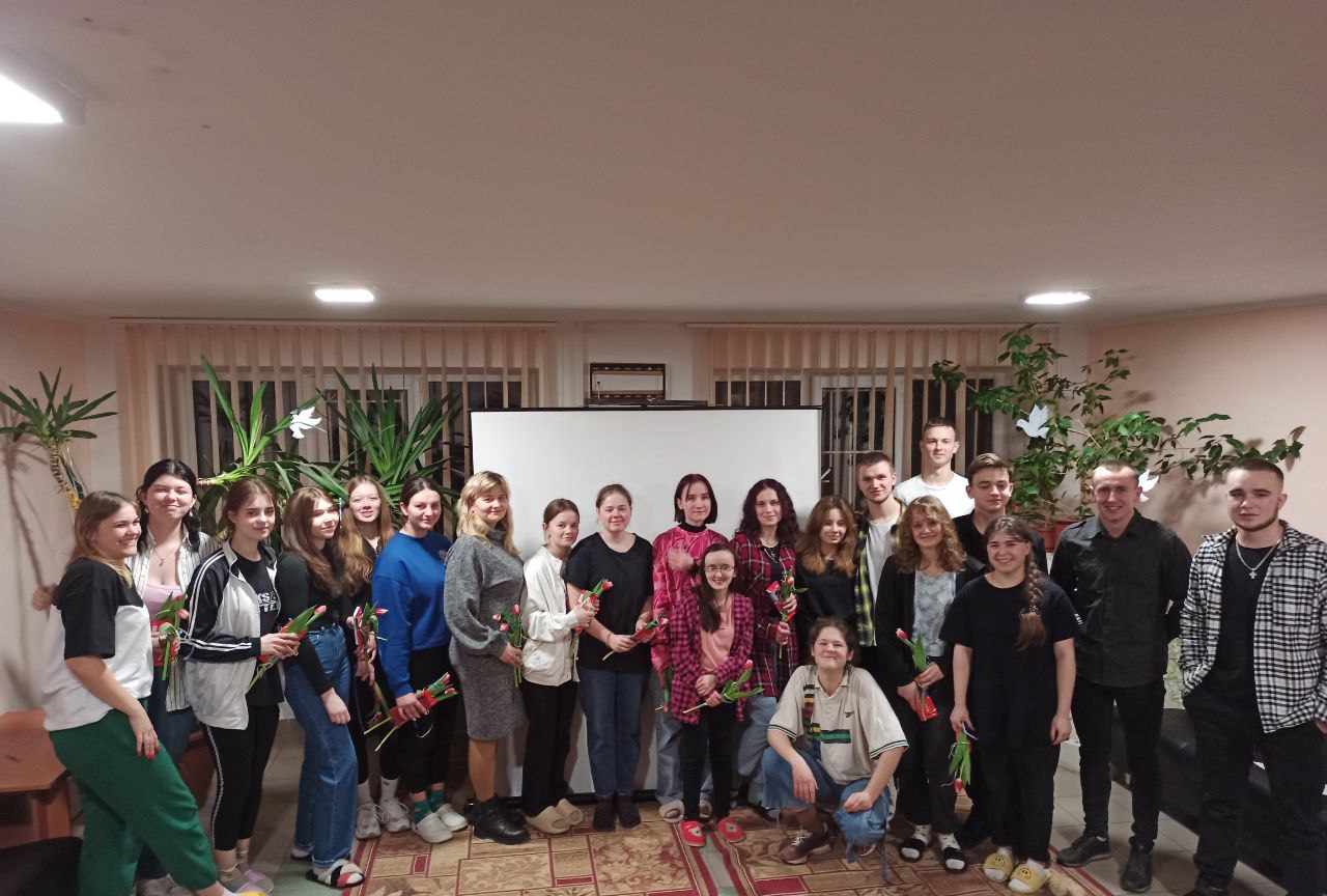 На цьому флешмобі хлопці читали вірші, співали пісні та привітали всіх дівчат квітами та солодощами!