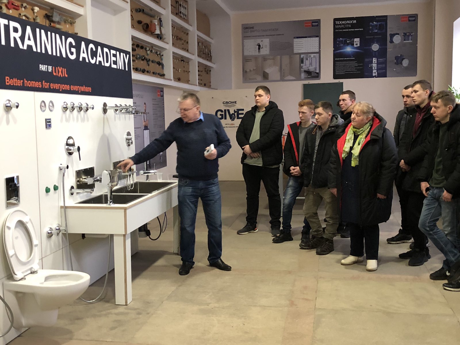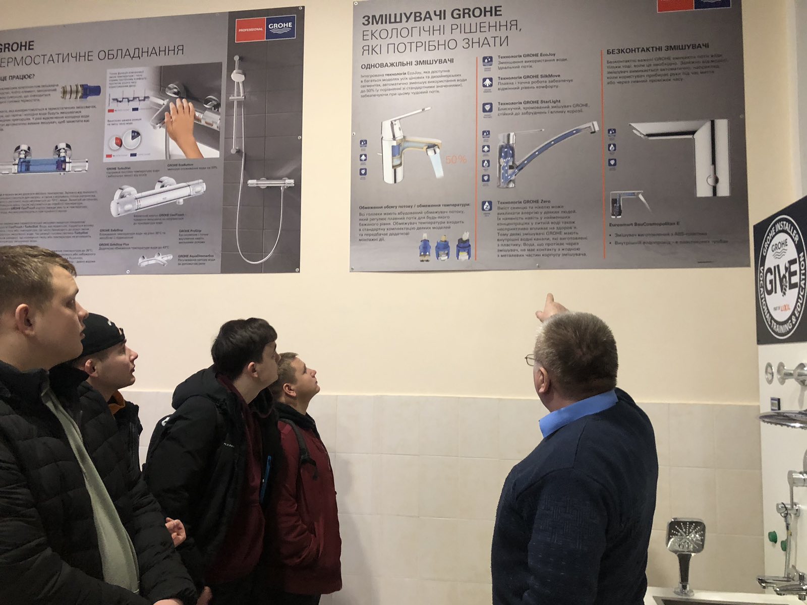 Студенти групи  БЦІ 11-12 9 березня 2023 р. під керівництвом викладача спецдисциплін Півнюк Л.М. відвідали центр професійних компетенцій GROHЕ, виробника сантехнічного обладнання, що нещодавно відкрився на базі Луцького ВПУ будівництва та архітектури.  Майстер виробничого навчання Приймачук П.В. ознайомив студентів із програмою GROHE GIVE, з сантехнічними виробами та довідниковою літературою (каталогам,прайсами) даної компанії.