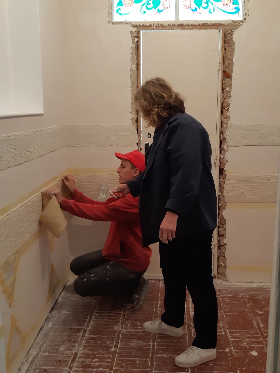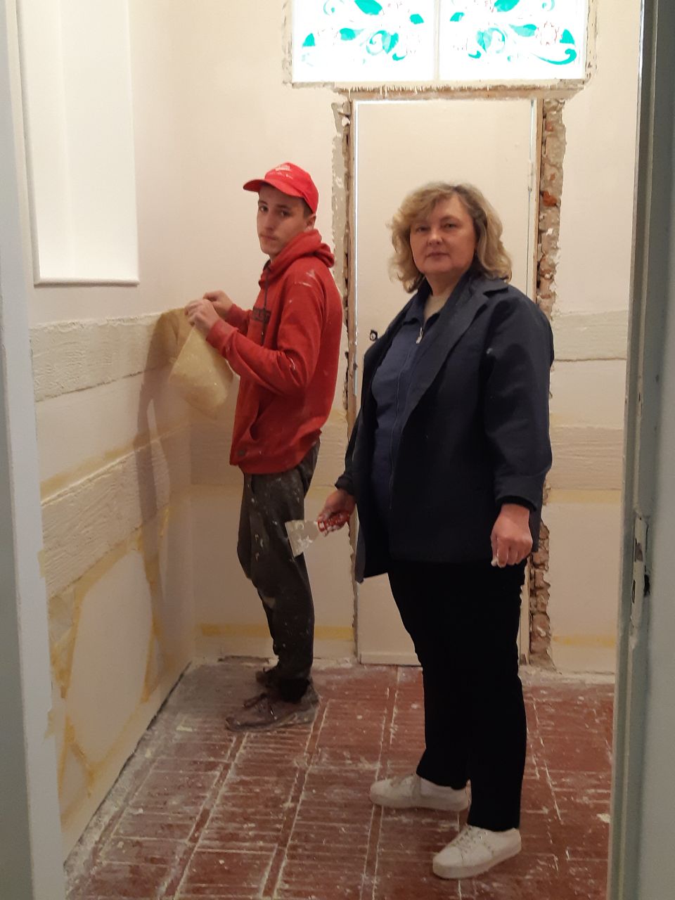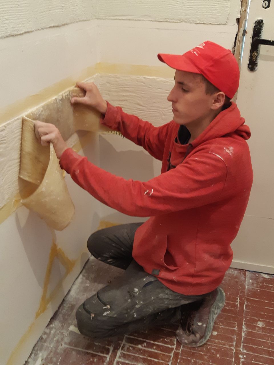 10 Тра #Моя_професія_моє_майбутнє Луцький ПКБА | Виробнича практика, Новини | off Виробнича практика Виконання опоряджувальних робіт з використанням декоративних штукатурок учнями групи Т-2 за професіями маляр, лицювальник-плиточник, майстер виробничого навчання Любов Кравчук.