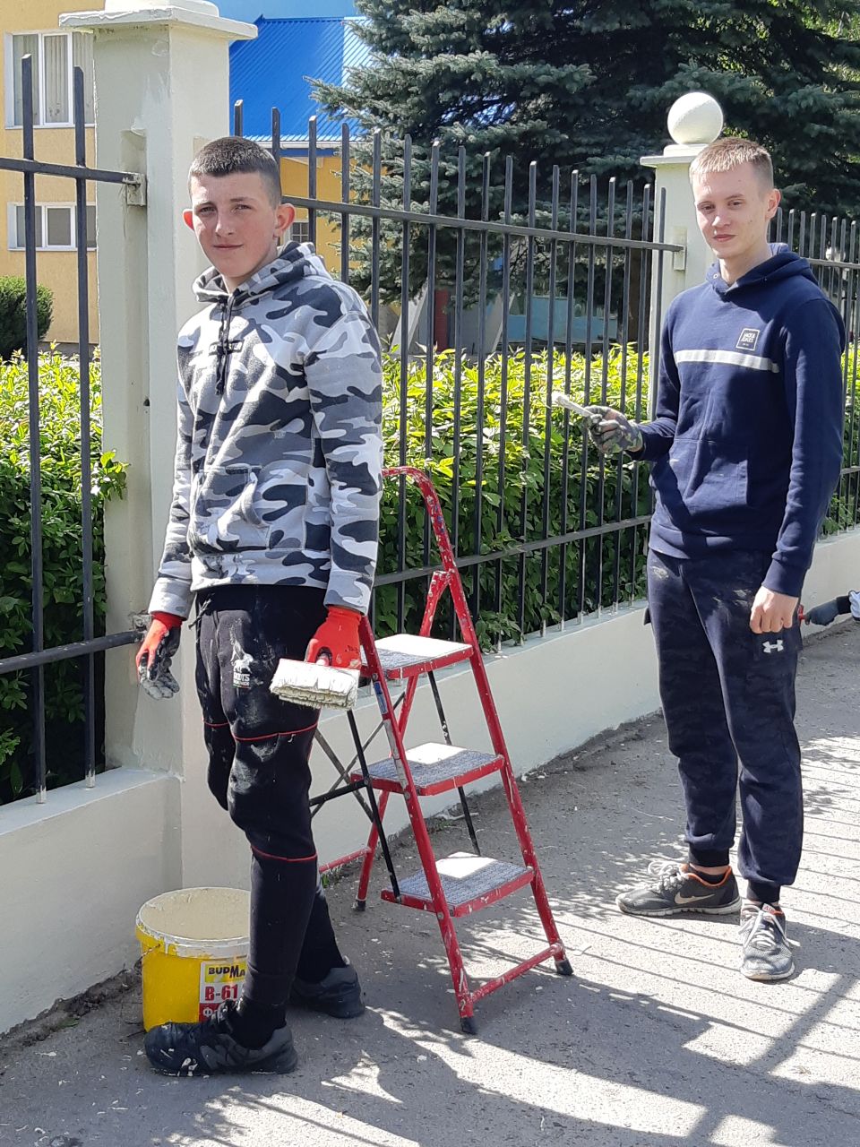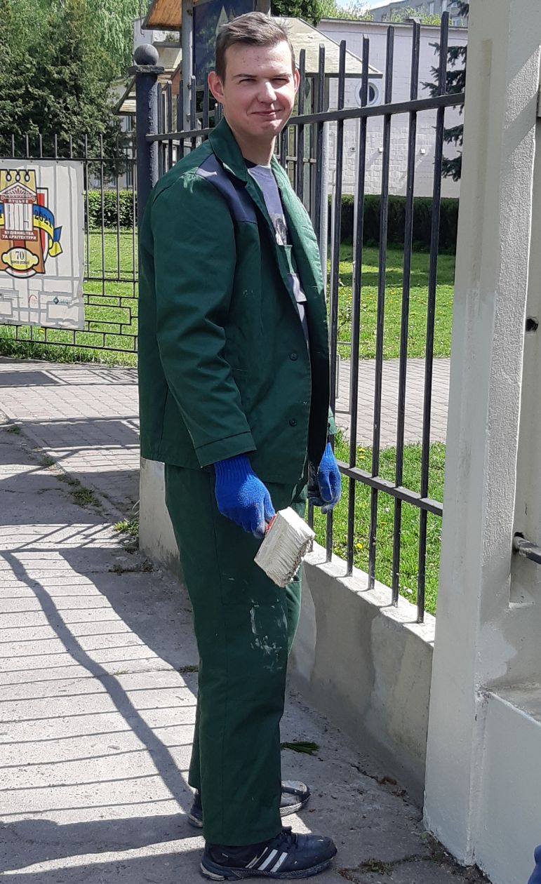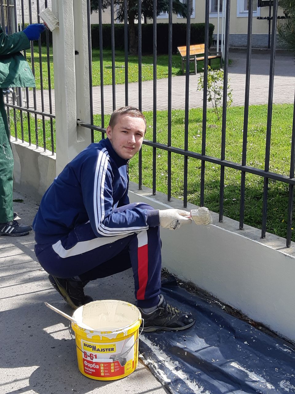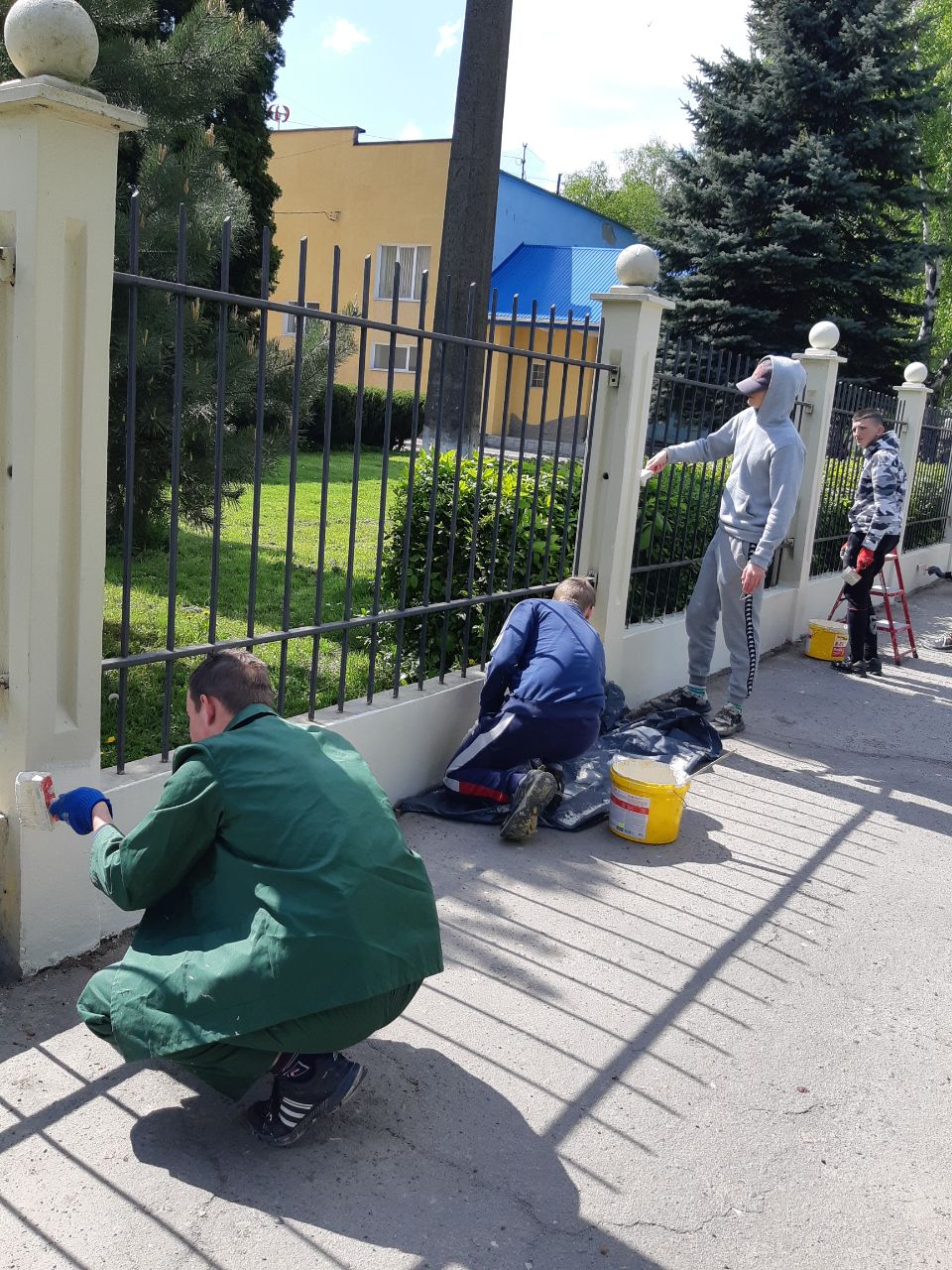 ?‍? Виконання робіт по фарбуванню огорожі учнями групи 12 за професією опоряджувальник будівельний, майстер виробничого навчання Тетяна Ткаченко.