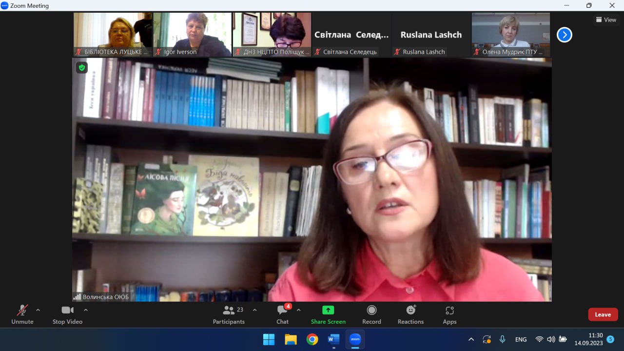 Учасники секції обговорили питання списання російськомовної літератури та роботи з фондом, організації роботи бібліотеки у воєнний час, моніторингу бібліотечних фондів ЗП(ПТ)О, стану забезпечення освітнього процесу навчальною літературою тощо.