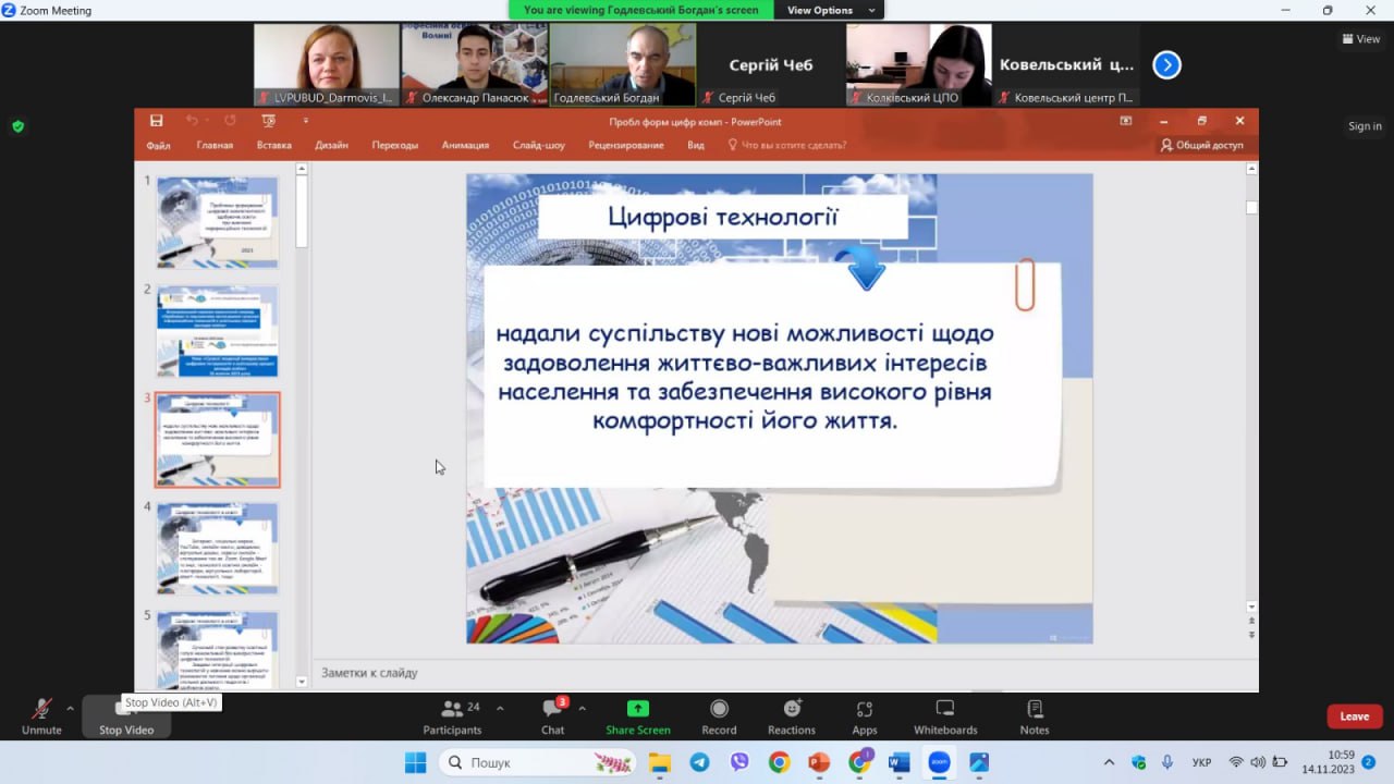 14 листопада у форматі онлайн-зустрічі відбулася обласна методична секція викладачів інформатики та інформаційних технологій з теми «Розвиток цифрової компетентності здобувачів освіти ЗП(ПТ)О як ключової компетентності для навчання протягом життя».