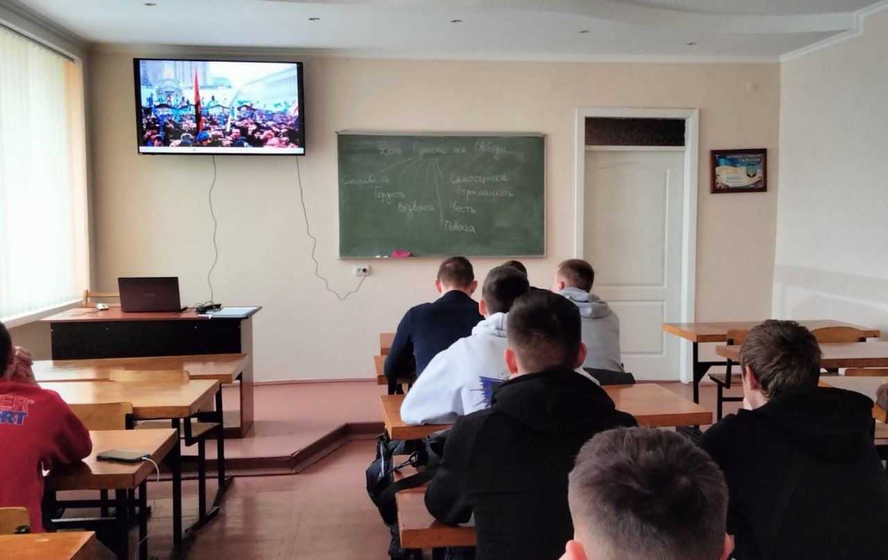 21 листопада відбувся виховний захід з учнями групи 22, які здобувають професії штукатура, маляра та лицювальника плиточника, присвячений Дню Гідності та Свободи.