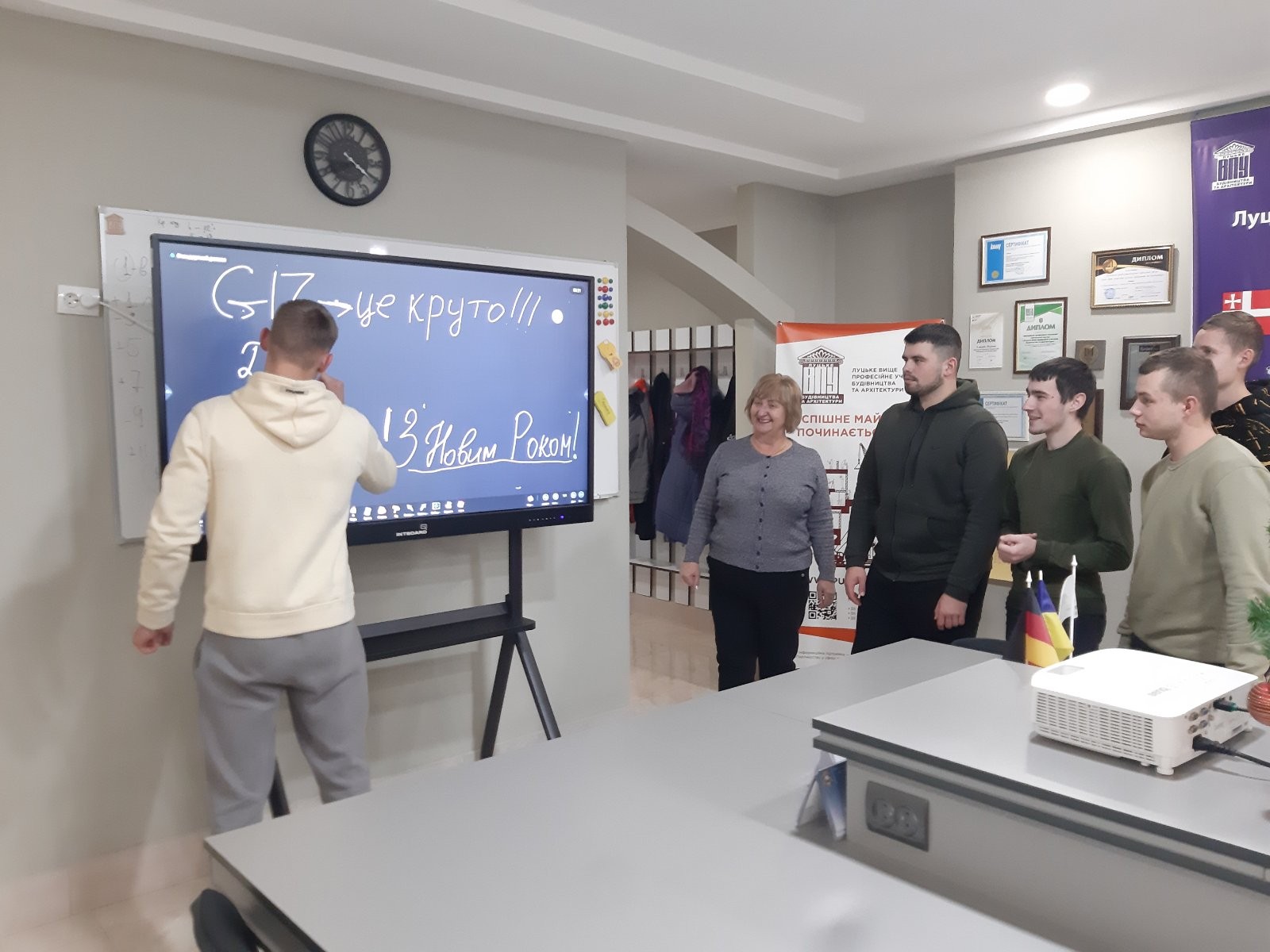 інтерактивна панель INTBOARD GT65 з вбудованим ПК і мобільною стійкою стануть невід’ємною частиною навчального процесу підготовки наших фахівців будівельної галузі в умовах воєнного часу.