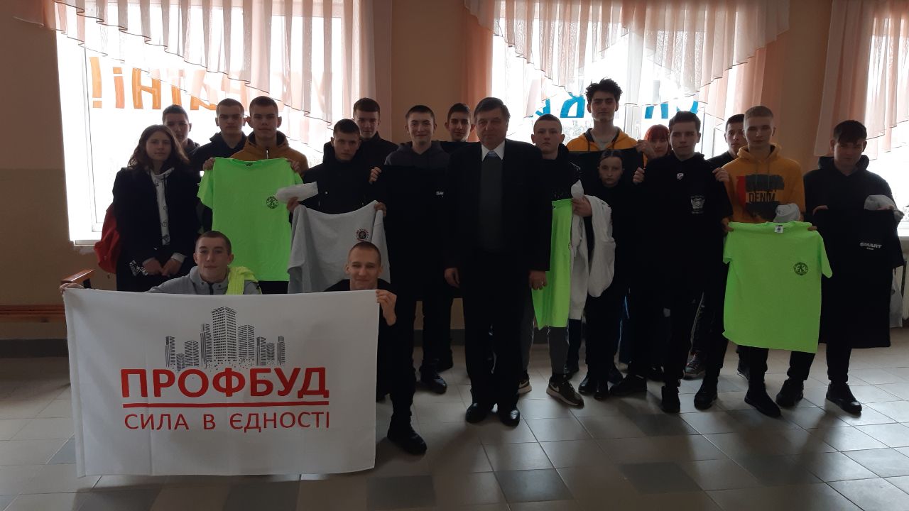Голова профкому Володимир Корінчук спільно з представниками дирекції Луцького ВПУ будівництва та архітектури вручили здобувачам освіти подарунки, які стануть у нагоді під час виробничого навчання, а саме: футболки, худі та захисні окуляри.