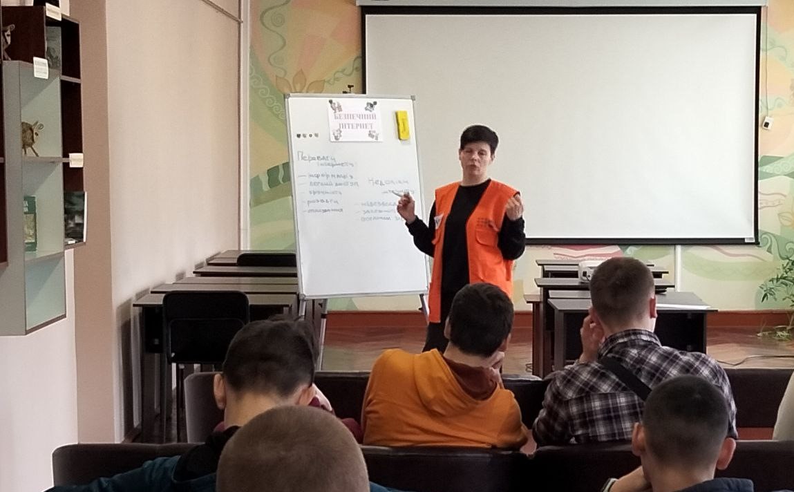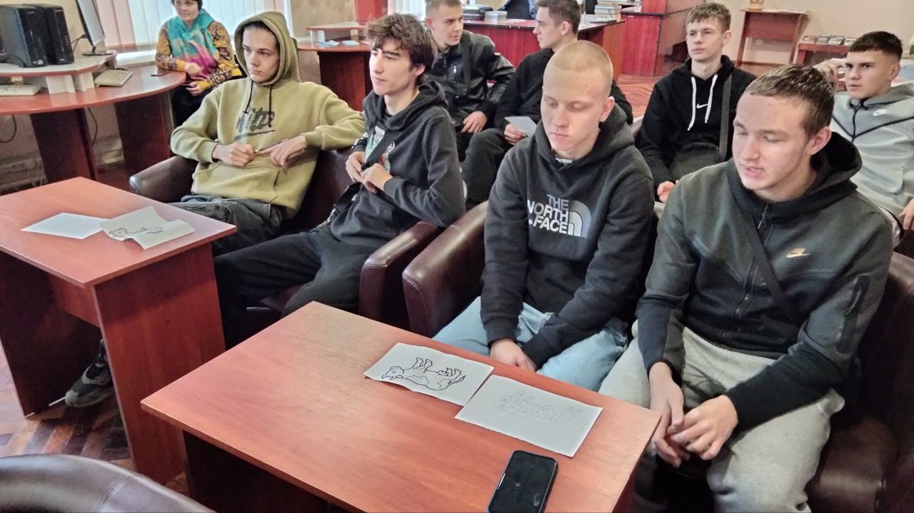 У читальній залі бібліотеки училища учні групи ШПМ 22, які здобувають професії штукатур, маляр, плиточник вчилися застосовувати критичний підхід у процесі споживання й продукування інформації, бути уважними до персональних даних, дотримуватися меж приватності в онлайн середовищі і також обговорили такі види цифрового шахрайства як фармінг, фішинг, кібербулінг, грумінг.