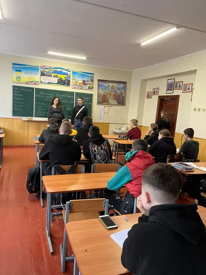 У рамках профорієнтації викладач Ніна Полівода та представники студради – учень групи МС-11 Микола Згей та учениця групи ДПМ-25 Христина Тимчук, відвідали Луцьку гімназію №16.