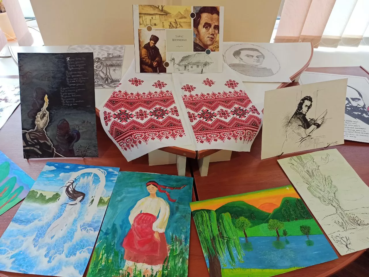 Організовано виставку учнівських картин та ілюстрацій до творів Шевченка…