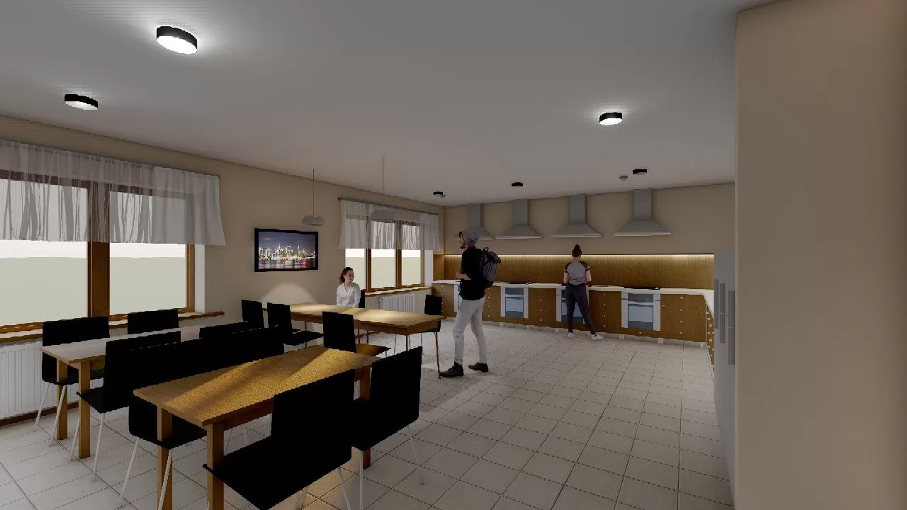 Нова їдальня буде оснащена сучасним кухонним обладнанням для приготування здорової та смачної їжі. Крім того, простір їдальні спроектовано таким чином, щоб створити затишну та дружню атмосферу, що сприяє відпочинку та спілкуванню студентів.