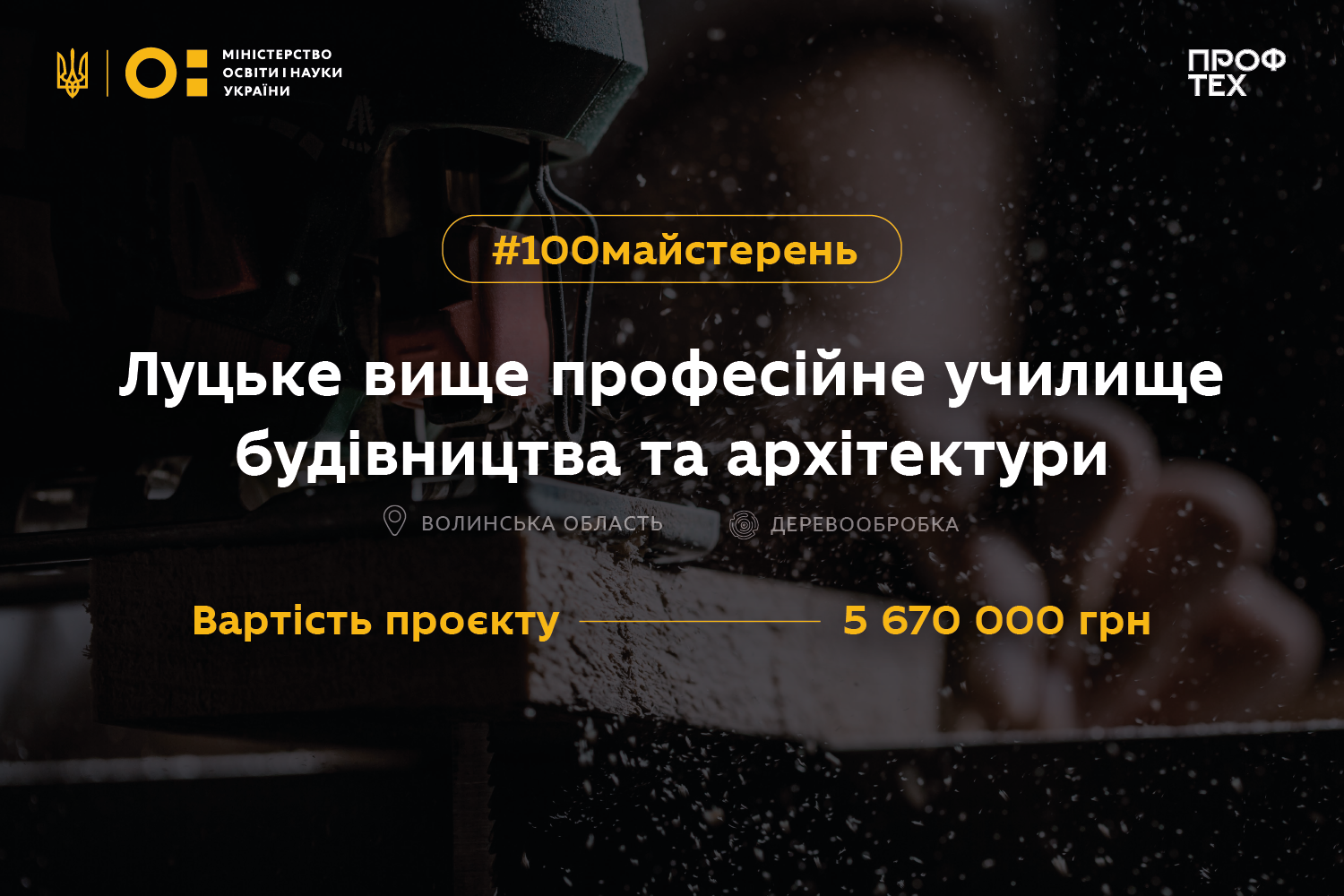 Це проєкт Міністерства освіти і науки, метою якого є оновлення 100 майстерень закладів професійної освіти, які допоможуть учням ефективно та якісно навчатись найбільш затребуваним професіям для нашої країни.