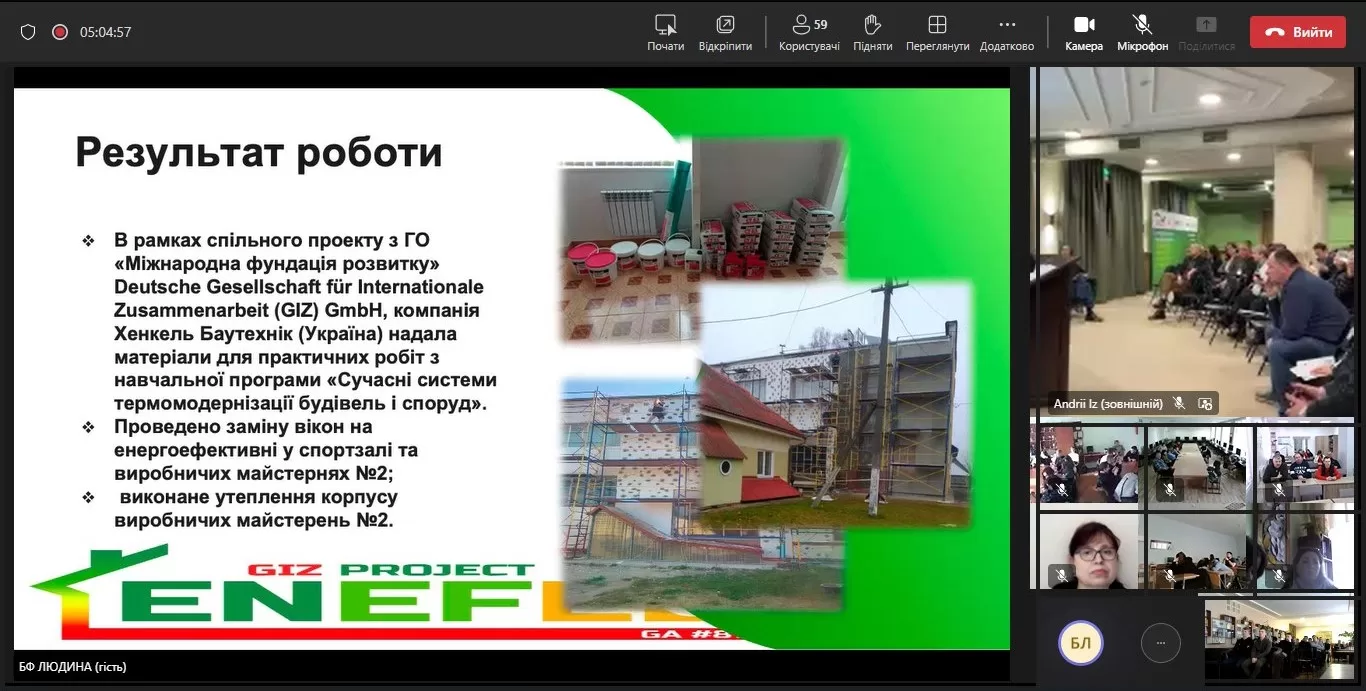 Директор закладу Володимир Шмігель та керівник проєкту GIZ, Валентина Ліщук звітували про досягнення, які здобув заклад за період втілення енергоефективних заходів в училищі та за результатами участі у проєкті.