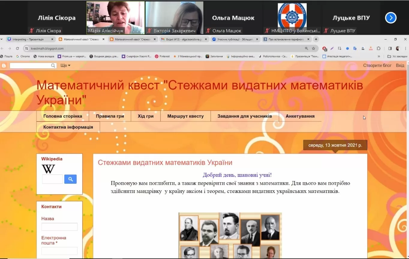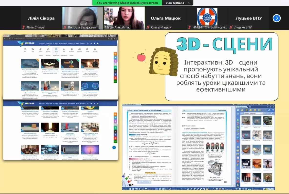 На онлайн засіданні обласної секції викладачів математики та фізики 4 квітня 2024 року педагоги ділилися досвідом з теми «Підвищення якості знань здобувачів освіти шляхом впровадження інноваційних педагогічних технологій». У роботі секції взяли участь викладачі Луцького ВПУ будівництва та архітектури Богдана Кушнірук та Лілія Сікора. Особлива увага була приділена питанням підготовки та проведення Національного мультипредметного тесту у 2024 році з математики і фізики, цифровізації уроків шляхом використання освітніх платформ, підвищення мотивації учнів до вивчення фізики та математики.