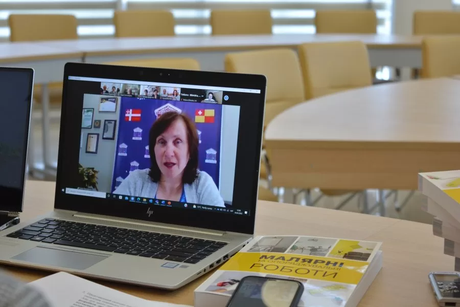 Досвідом використання посібника у навчальному процесі поділилася керівник НПЦ «Снєжка» Луцького ВПУ будівництва та архітектури, викладач Надія Прохоренко, яка брала активну участь у розробці посібника у 2021 році. Окремо зупинилась на використанні матеріалів з посібника майстрами виробничого навчання на уроках професійно-практичної підготовки. Навела конкретні приклади інтерактивного використання посібника на уроках теоретичного навчання.