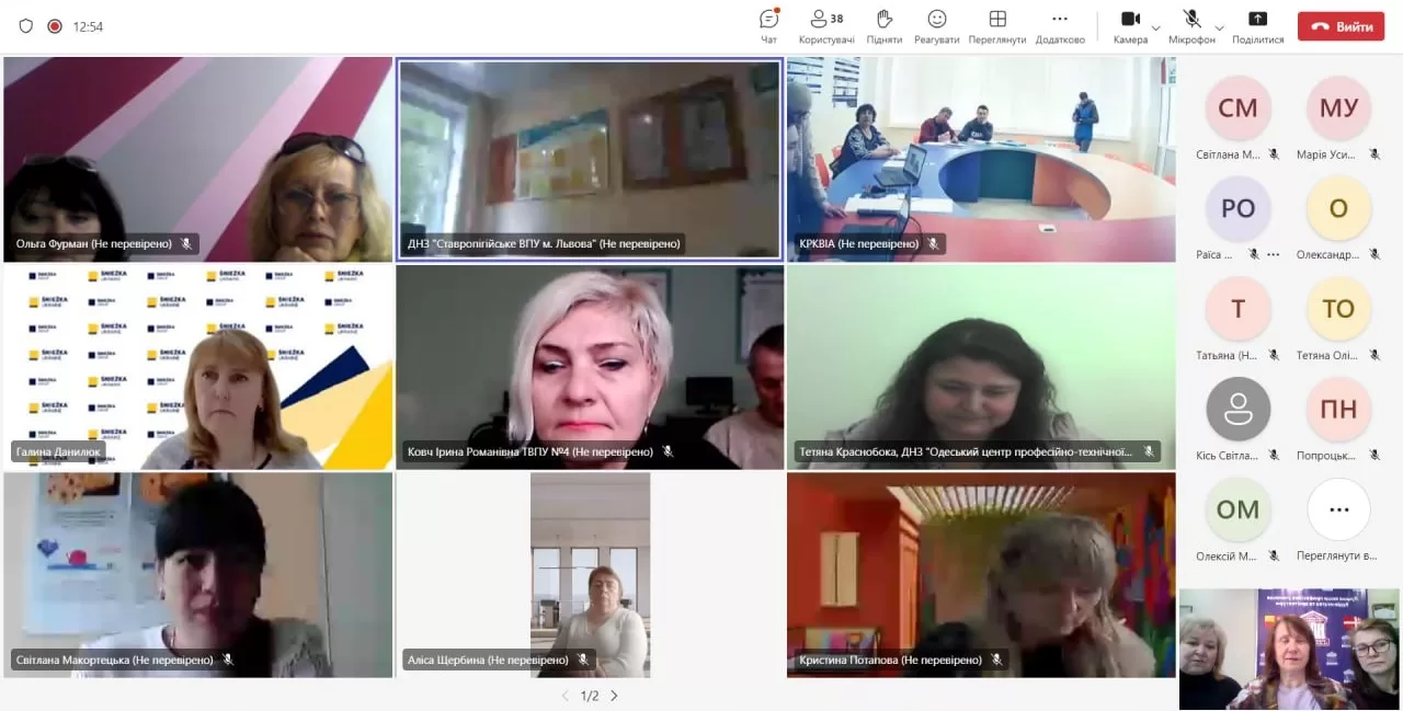 Досвідом використання посібника у навчальному процесі поділилася керівник НПЦ «Снєжка» Луцького ВПУ будівництва та архітектури, викладач Надія Прохоренко, яка брала активну участь у розробці посібника у 2021 році. Окремо зупинилась на використанні матеріалів з посібника майстрами виробничого навчання на уроках професійно-практичної підготовки. Навела конкретні приклади інтерактивного використання посібника на уроках теоретичного навчання.