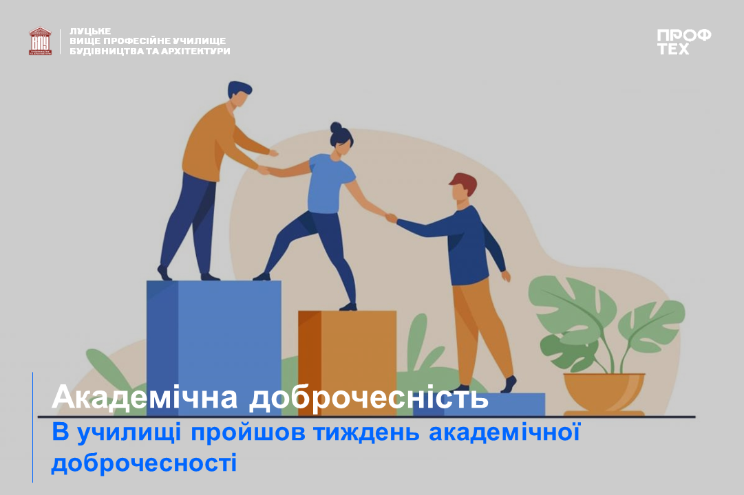 З основними принципами, правилами та вимогами щодо дотримання основних положень доброчесності учні усіх груп мали можливість вкотре ознайомитися на годинах спілкування та позакласних заходах в рамках тижня доброчесності, який пройшов 22-26 квітня в Луцькому ВПУ будівництва та архітектури. Учні усіх груп сформували кодекси честі груп і презентували їх в учнівських колективах.
