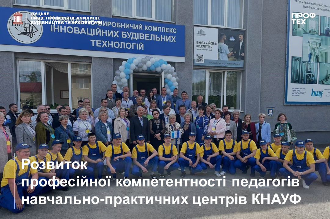У конференції беруть участь педагогічні працівники закладів професійної (професійно-технічної) освіти, на базі яких створені навчально-практичні центри «Кнауф». Луцьке ВПУ будівництва та архітектури представляють викладач спецпредметів Олександр Кравчук та майстер виробничого навчання Юрій Урбан. Перший день роботи конференції став плідним для нашого закладу освіти. За підсумками діяльності навчально-практичних центрів у 2022 році у різних номінаціях педагогічний колектив Луцького ВПУ будівництва та архітектури посів І та ІІ місце і отримав сертифікати на суми 20 тис.грн. та 15 тис.грн. на отримання гранту у вигляді будівельної продукції КНАУФ.