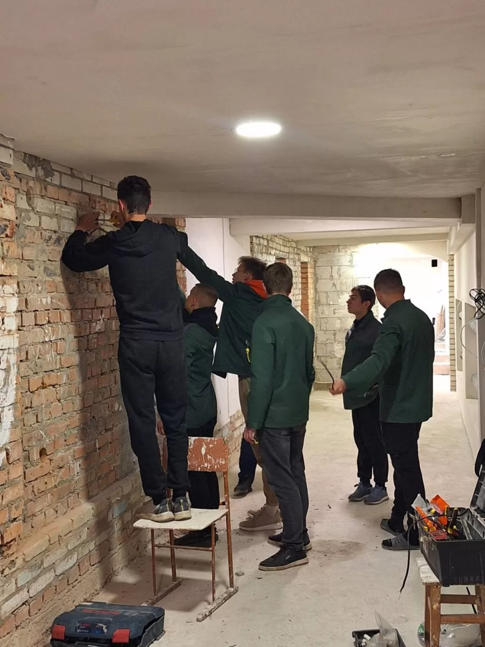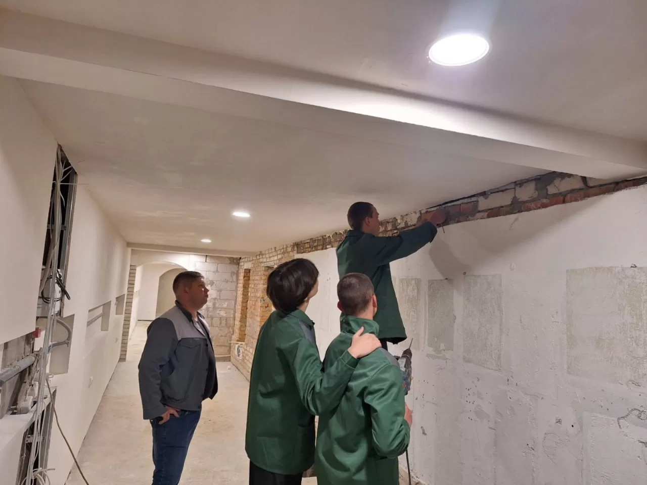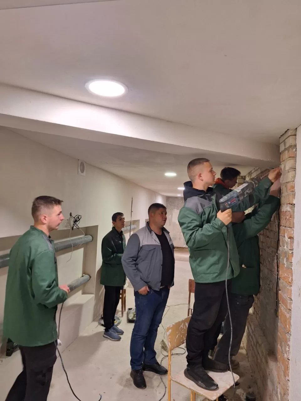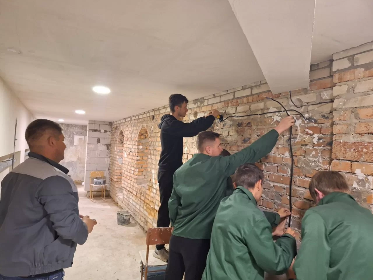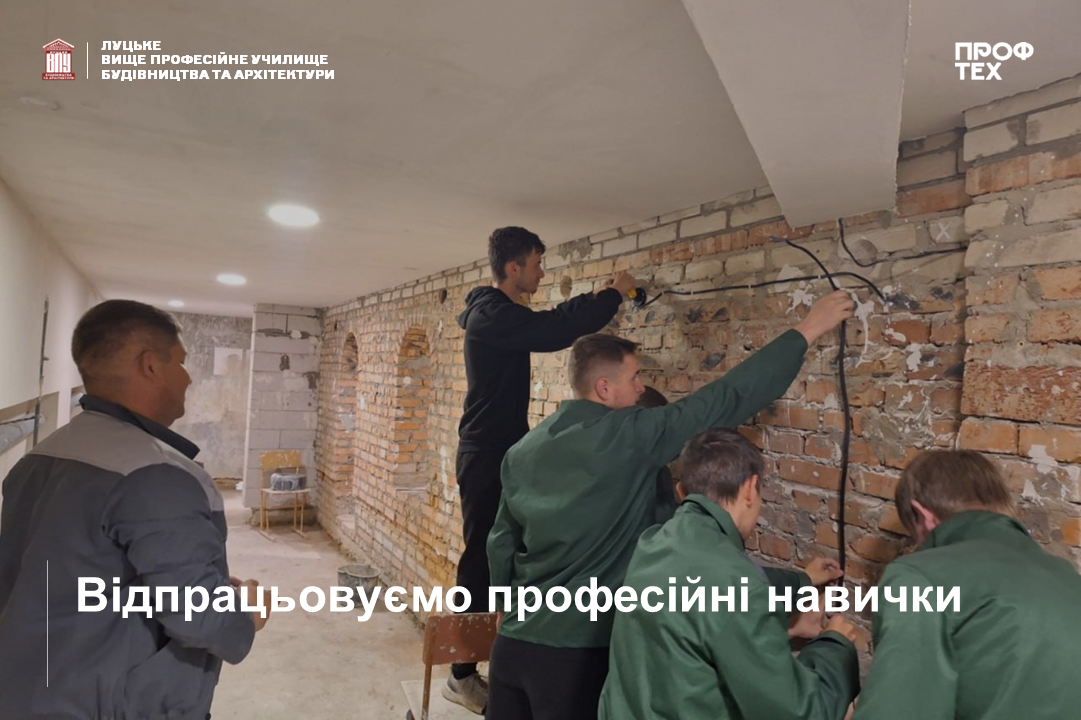 Група ЕОСМ – 24: проведення виробничого навчання на будівельному полігоні. 1 та 2 етап електромонтажних робіт: розмічання поверхні та прокладання електрокабеля. Майстер в\н Дмитріюк В.В.