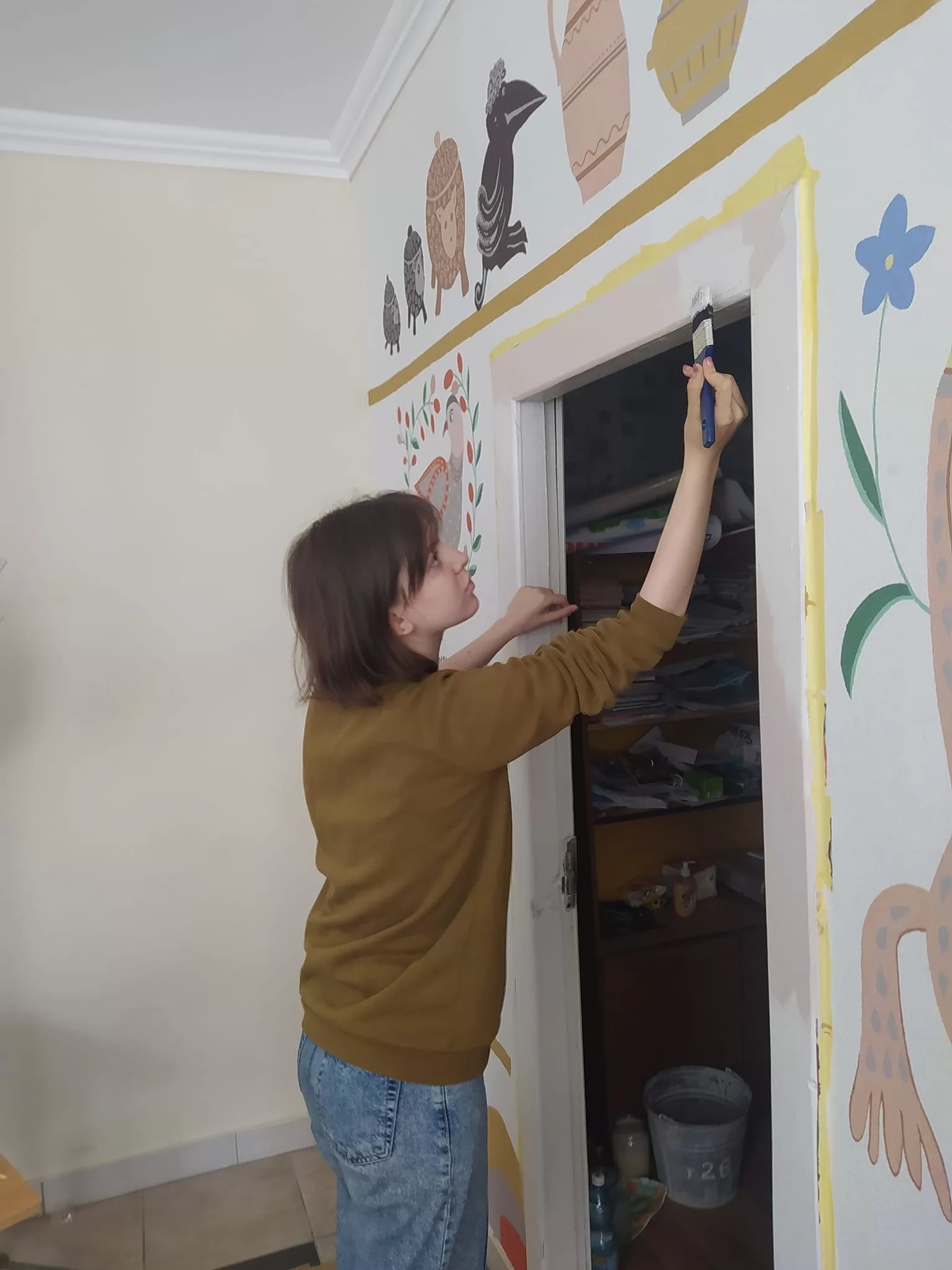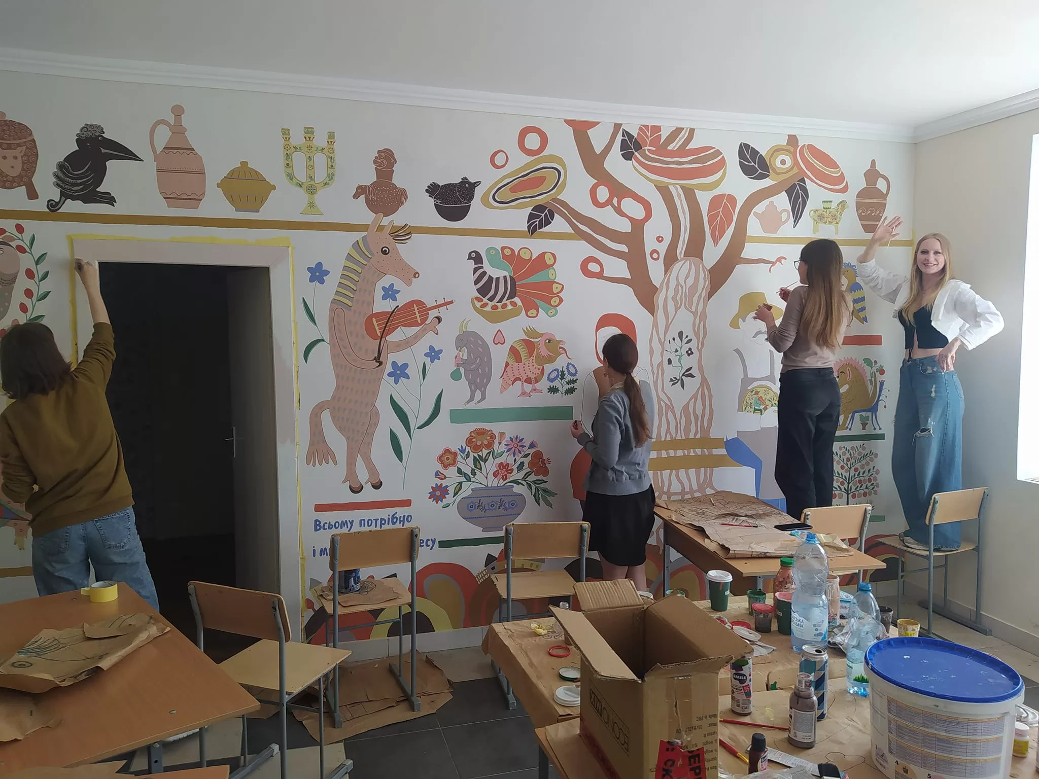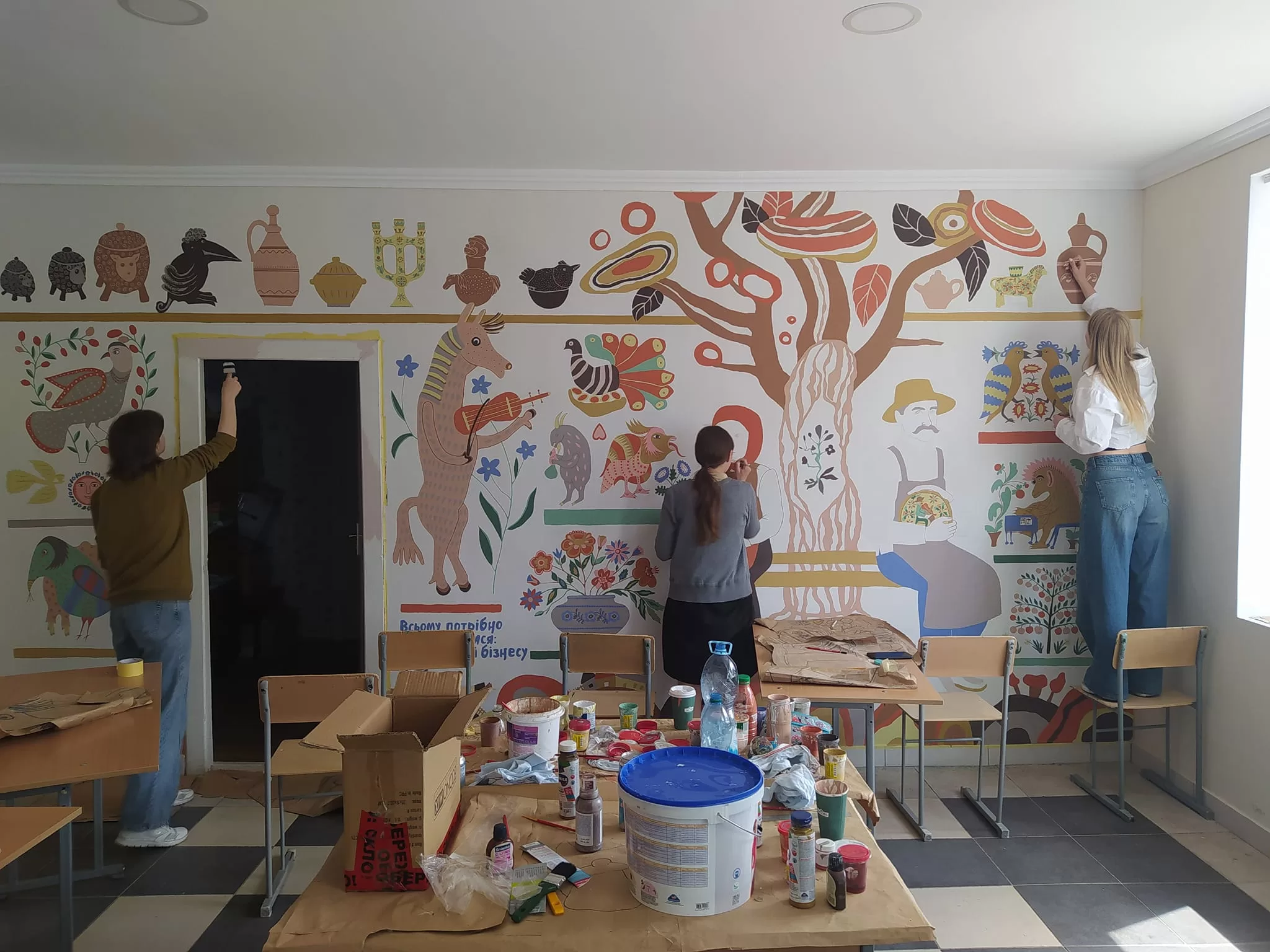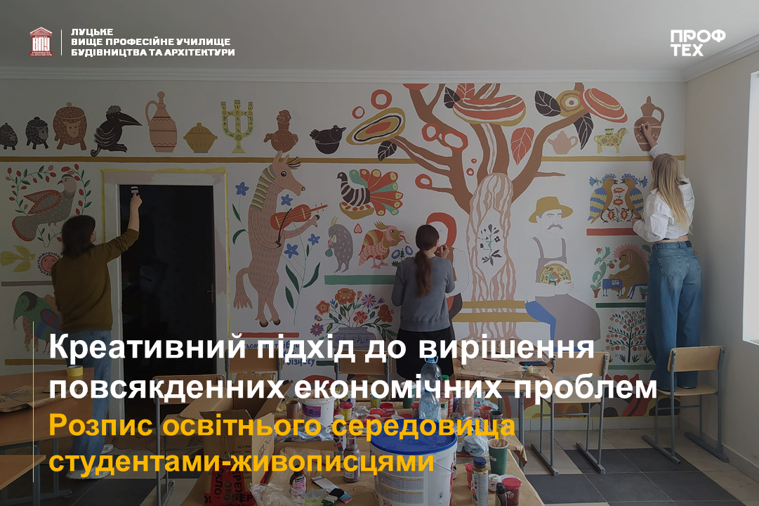 Розпис в кабінеті основ економіки і підприємницької діяльності Луцького ВПУ будівництва та архітектури поступово наближається до завершення.