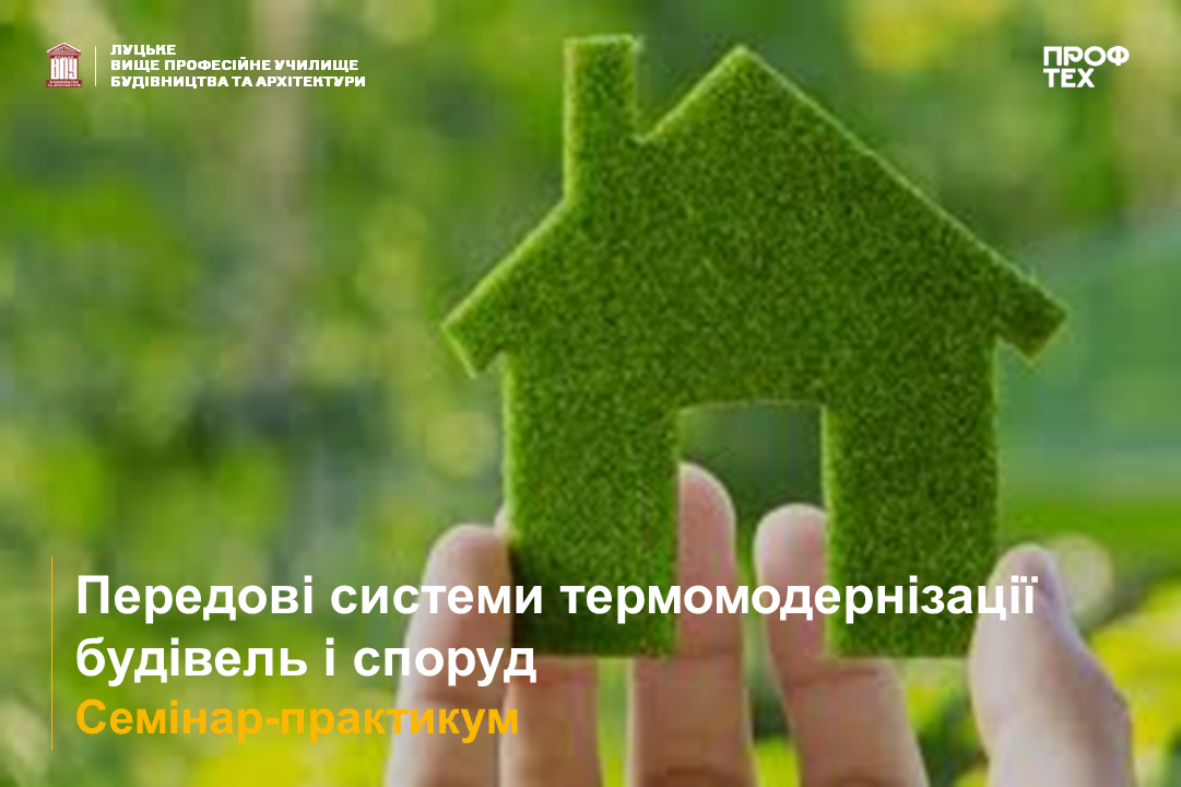 Семінар-практикум на тему «Передові системи термомодернізації будівель і споруд» 28 травня розпочав свою роботу на базі  закладу професійної (професійно-технічної) освіти «Луцьке ВПУ будівництва та архітектури» в рамках проєкту «Реформи у сфері енергоефективності в Україні», організованому Deutsche Gesellschaftfür Internationale Zusammenarbeit (GIZ) GmbH. Метою участі нашого закладу освіти у проєкті є реалізація практик впровадження енергоефективних технологій, створення просторів для навчання, співпраця, обмін досвідом, популяризація ідей у сфері енергоефективності.