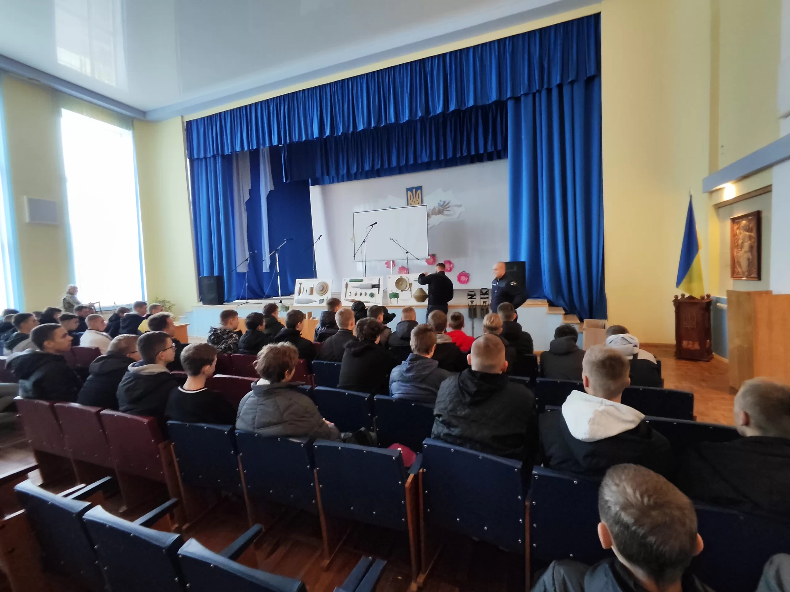 З метою створення безпечного освітнього середовища для учасників освітнього процесу, забезпечення навчання правилам безпеки життєдіяльності в умовах надзвичайних ситуацій, набуття практичних навичок поведінки в рамках проведення Тижня безпеки життєдіяльності фахівцями Луцького районного управління ГУ ДСНС України у Волинській області 15 жовтня 2024 року в училищі для учнів груп ШПМ-12, ЕОСМ-14, ЕОСМ-24 проведено заняття з протимінної безпеки та надання домедичної допомоги тим хто її потребує.