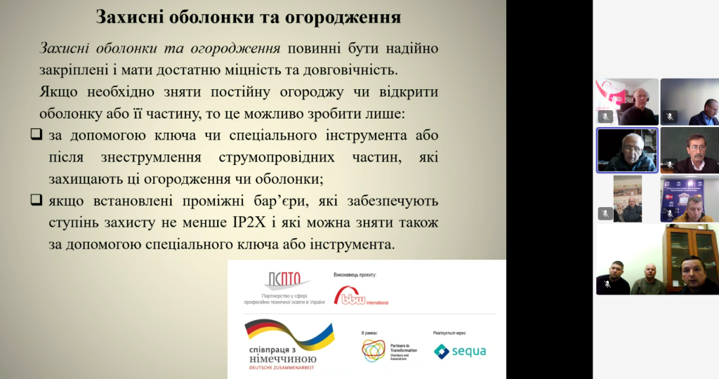 Охорона праці є одним з важливих елементів в організації сучасного виробничого процесу, а відтак – і навчально-виробничої складової у професійній освіті. Для більш детального ознайомлення з даною тематикою в рамках німецько-українського проєкту відбулася серія онлайн-семінарів за проектним професійним напрямком «Електрик».