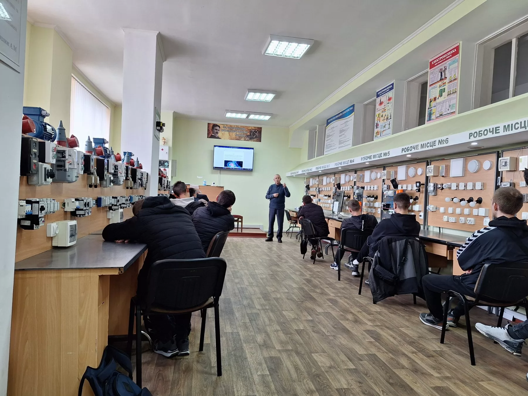 Студенти групи ЕОСМ, майстри виробничого навчання і викладачі спецпредметів взяли участь у заході, який провів експерт з електроенергетики Мирон Гоянюк.