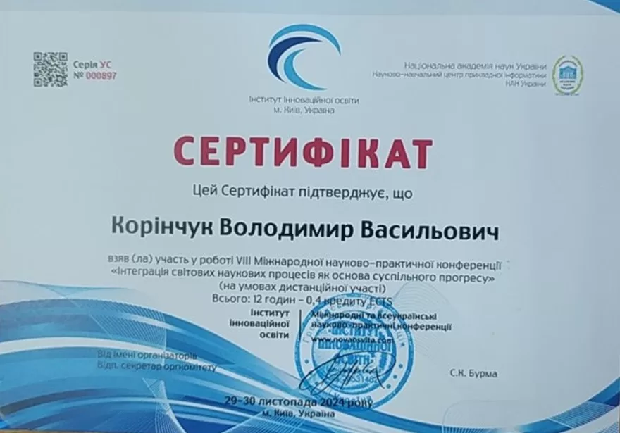 (Джерело: Матеріали VІІІ Міжнародної науково-практичної конференції 29-30 листопада 2024 року. м. Київ, с.67-72).