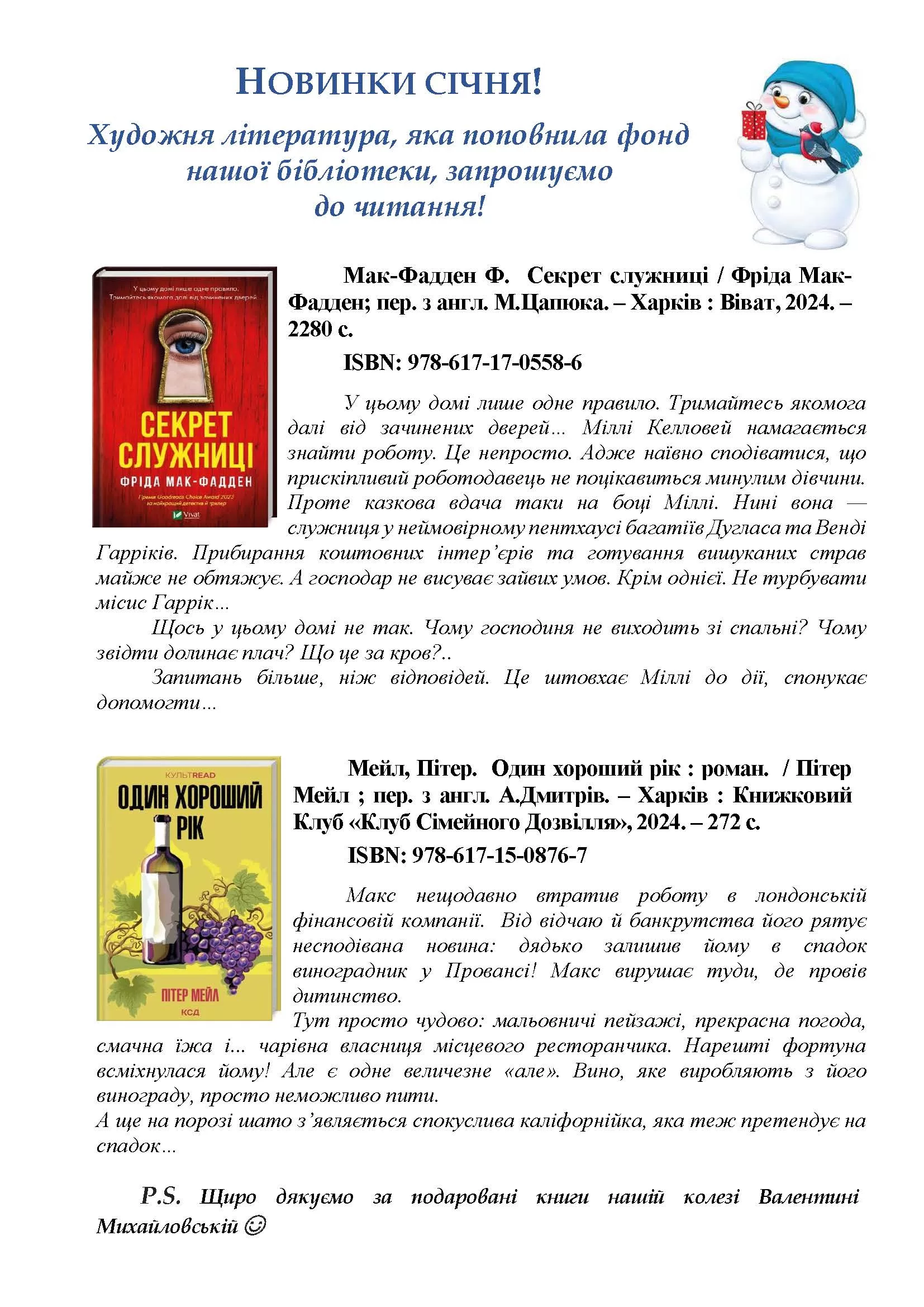 09 Січ НОВІ НАДХОДЖЕННЯ ДЛЯ НАШИХ ЧИТАЧІВ ЗА СІЧЕНЬ 2025 РОКУ | БІБЛІОТЕКА Луцький ПКБА | БІБЛІОТЕКА | 0