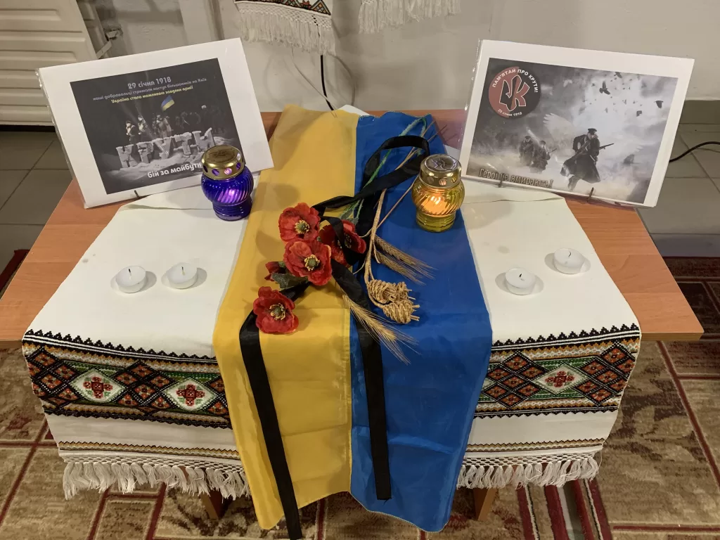 29 січня згадують героїв Крут – київських студентів, які саме в цей день у 1918 році вступили в бій чотирьохтисячною армією М. Муравйова. Найстаршому з них було — 23, наймолодшому — 15. Більшість із них жодного разу не тримала рушниці в руках, не бачила війни у вічі, та ціною власного життя зупинили переважаючого за чисельністю та озброєнням ворога, який фактично наступав на українську державність.