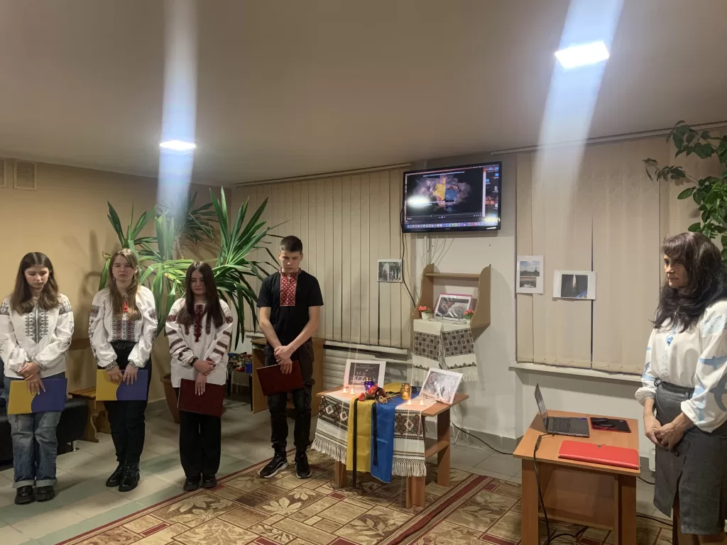 Зі словами – «Нехай кожен із нас торкнеться пам’яттю цього священного вогню- частинки вічного, а світло цієї свічки хай буде даниною тим, хто навічно пішов від нас, хто заради торжества справедливості жертвував собою. Вони повинні жити в нашій пам’яті!» – учні запалили свічі.