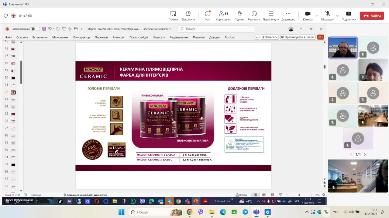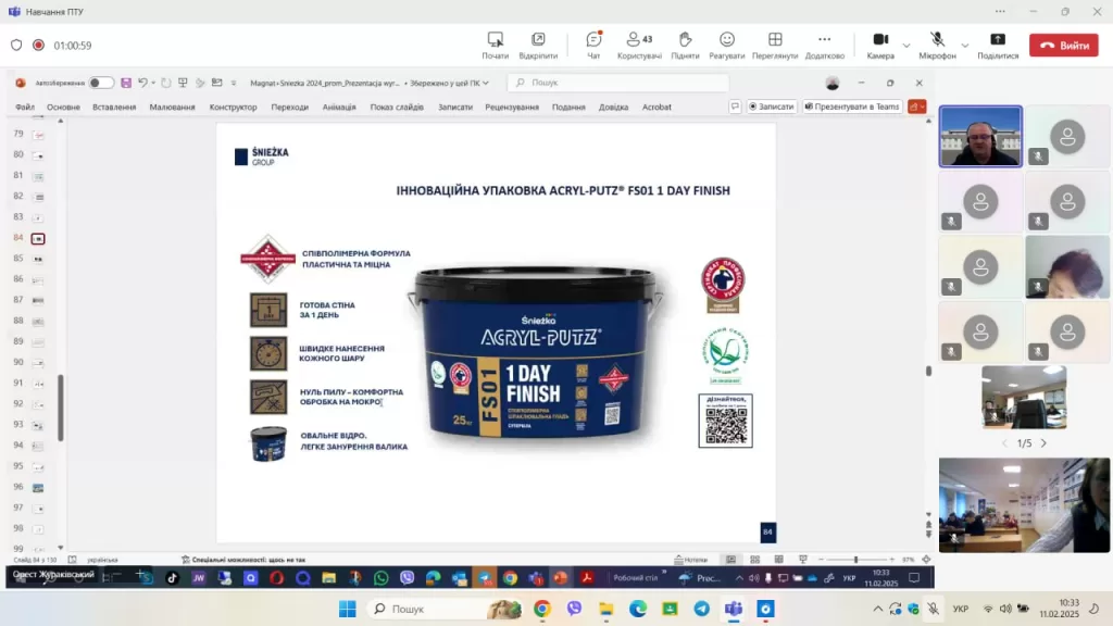 11 лютого 2025 року в училищі відбувся онлайн освітній тренінг «Вивчення нових виробів TM Sniezka та TM MAGNAT», який провів тренер ТзОВ «СНЄЖКА-УКРАЇНА» Орест Жураківський.