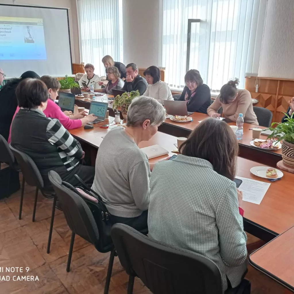 Засідання пройшло у формі навчально-практичного семінару. Колеги поділилися корисними ресурсами для онлайн та офлайн уроків природничого циклу. Створювали спільну презентацію на ресурсі Canva. Працювали з інтерактивними тестами на сайті Всеосвіта. Виконували вправи по застосуванню мʼяких навичок.