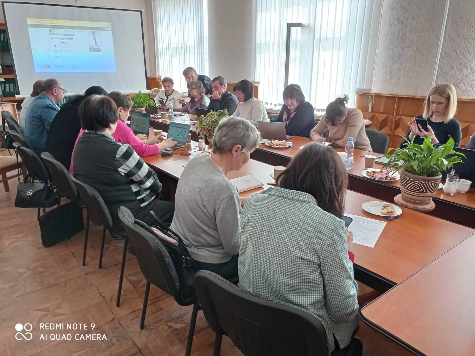 Засідання пройшло у формі навчально-практичного семінару. Колеги поділилися корисними ресурсами для онлайн та офлайн уроків природничого циклу. Створювали спільну презентацію на ресурсі Canva. Працювали з інтерактивними тестами на сайті Всеосвіта. Виконували вправи по застосуванню мʼяких навичок.