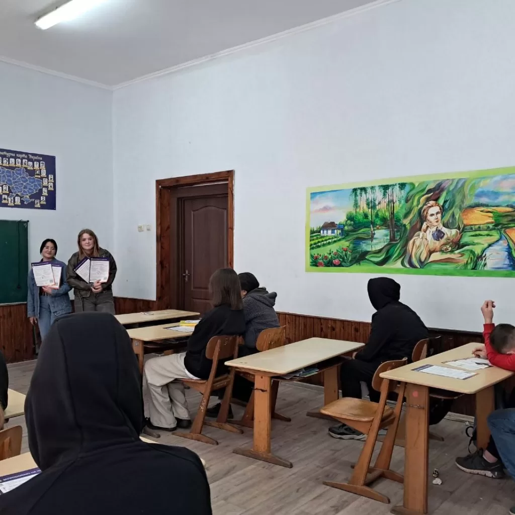 Наші представники – учениці Вероніка Дідух, Анна Музика, Тетяна Корнійчук – разом із заступником секретаря приймальної комісії Наталією Підцерковною розповіли школярам про можливості подальшого навчання, актуальні професії та перспективи майбутнього працевлаштування.