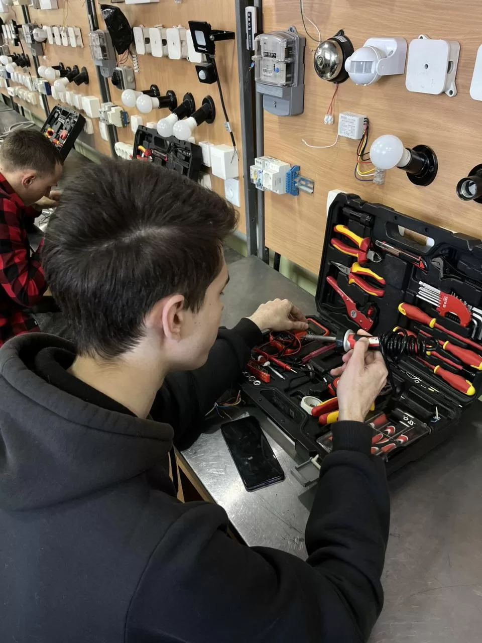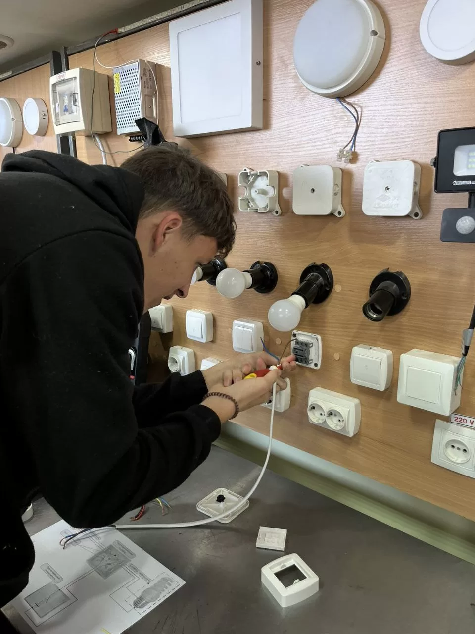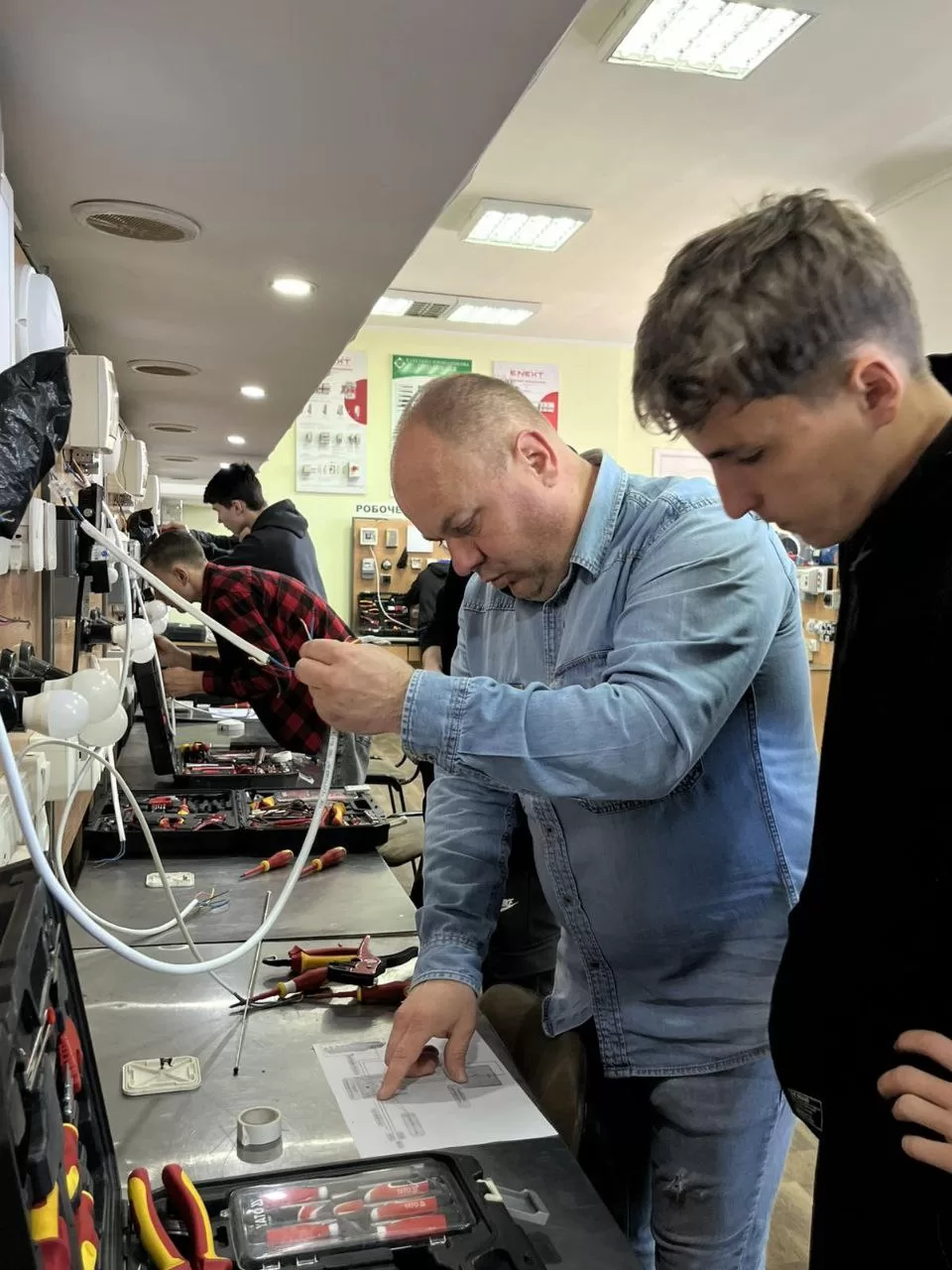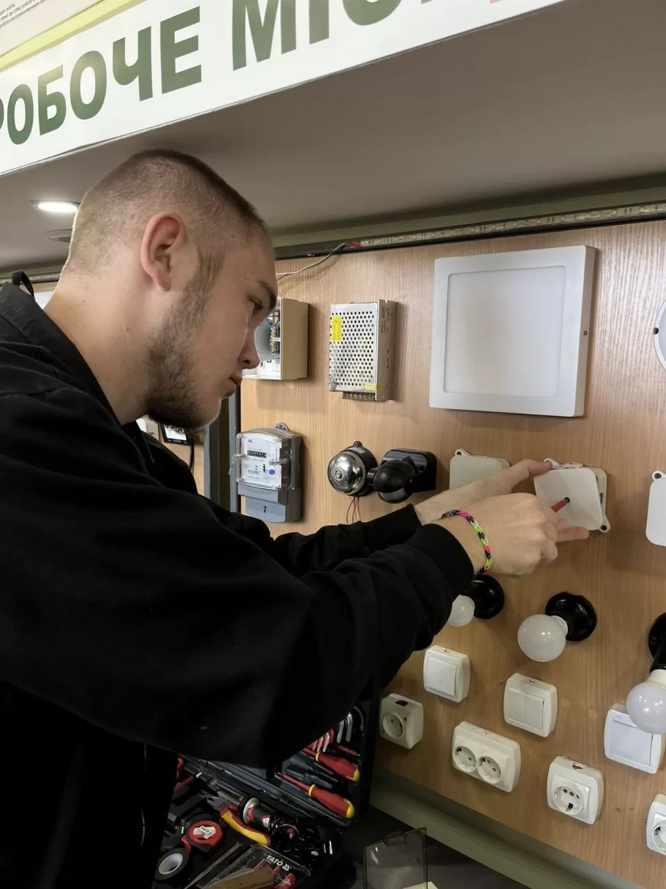 У рамках практичної підготовки студенти групи БЦІ-11 відвідали навчально-практичний центр електромонтажних робіт. Під керівництвом викладача спецдисциплін Півнюк Л.М. майстер-клас провів викладач спецдисциплін Козлюк А.М. Під час заняття студенти удосконалювали навички з монтажу електрообладнання та знайомилися з сучасними інструментами та технологіями, які використовуються в електромонтажній справі.