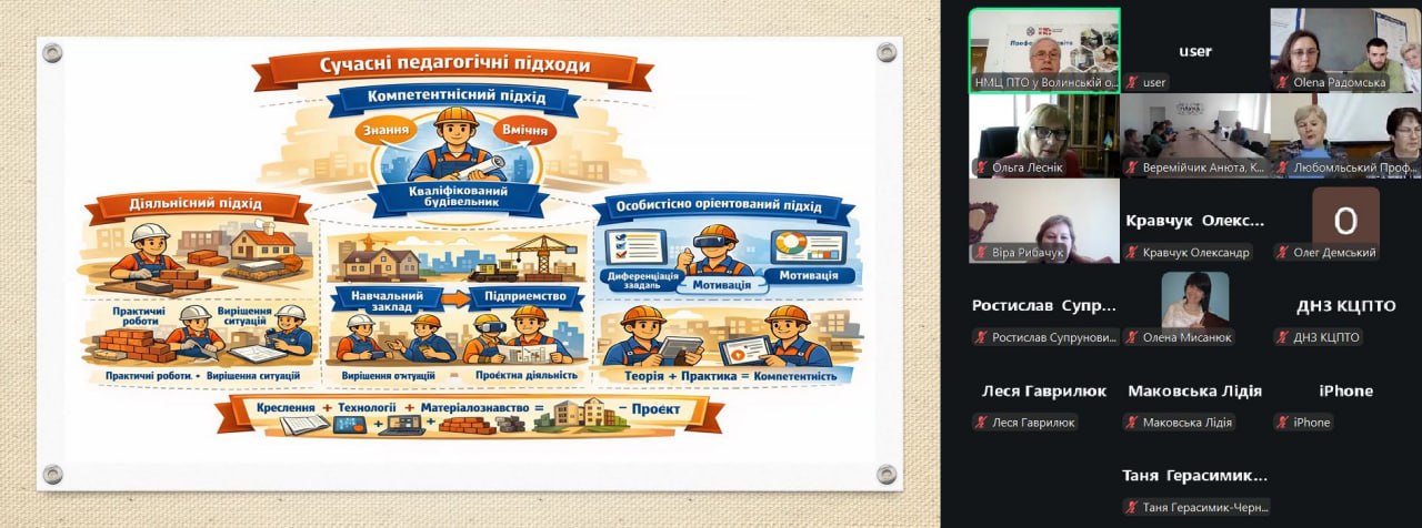 5 березня 2026 року в онлайн-форматі відбулося засідання секції педагогічних працівників будівельних професій, на якій обговорювали питання підвищення якості професійної підготовки через ширше використання інноваційних виробничих та цифрових технологій в навчальний процес.