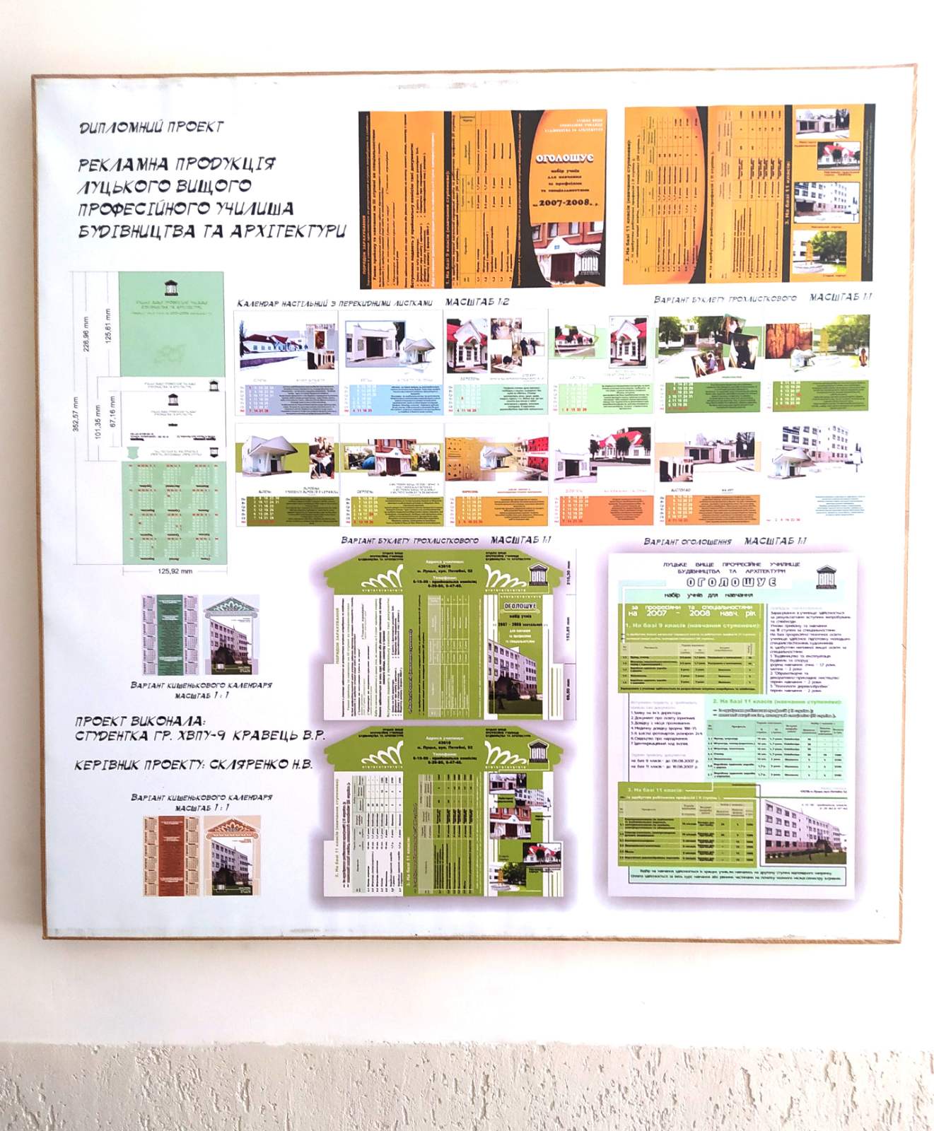 До обов’язків дизайнера входить проектування і виготовлення художньо-оформлювальної (дизайнерської) продукції у вигляді елементів внутрішньої і зовнішньої реклами (табличок, вивісок, стендів, оголошень, реклами, стікерів, сітілайтів, банерів та інших виробів графічно-поліграфічної продукції. Працює, як правило, індивідуально, або в складі бригади 2-3-5 чоловік. Необхідна майстерня з обладнанням для виконання виробів художньо-оформлювального характеру, компютер, принтер, плоттер, уміння працювати з графічними редакторами, оракалом, пластиком, ДВП, картоном і папером. Медичні обмеження/протипоказання/. Претенденти на опанування професії виконавець художньо-оформлювальних робіт повинен мати добрий, гострий зір з нормальним кольоросприйняттям, не мати схильності до серцево-судинних та легеневих захворювань, не страждати органічними ураженнями центральної нервової системи, епілепсією тощо. Професія передбачає високе навантаження для зору. Структура професійного навчання Навчаючись професії на базі 9 класу, учні за 3 роки здобувають повну загальну середню освіту і засвоюють загально-професійний блок знань за модульно-компетентнісними підходами на рівні 3-4 розряду. Навчання професії відбувається в навчально-виробничих майстернях училища. На третьому курсі іде лише професійне навчання, яке дає можливість вдосконалити навички 3 розряду, пройти практику на виробництві, здобути знання і навички 4 розряду з професії і отримати диплом кваліфікованого робітника 4 розряду з професії виробник художніх виробів з дерева після успішної здачі кваліфікаційної атестації (КА) та Державної кваліфікаційної атестації (ДКА) Перспективи працевлаштування Індивідуальне працевлаштування, ФОП, деревообробні та меблеві підприємства, приватні столярні та дизайнерські майстерні, інтер’єрні студії, художні реставраційні майстерні. Роботи, пов’язані з рекламним та художнім оформленням на підприємствах, в організаціях та установах всіх видів економічної діяльності, виробництвом сувенірної, графічно-поліграфічної продукції. Продовження навчання в училищі на фахового молодшого бакалавра та у ВНЗ художнього профілю.