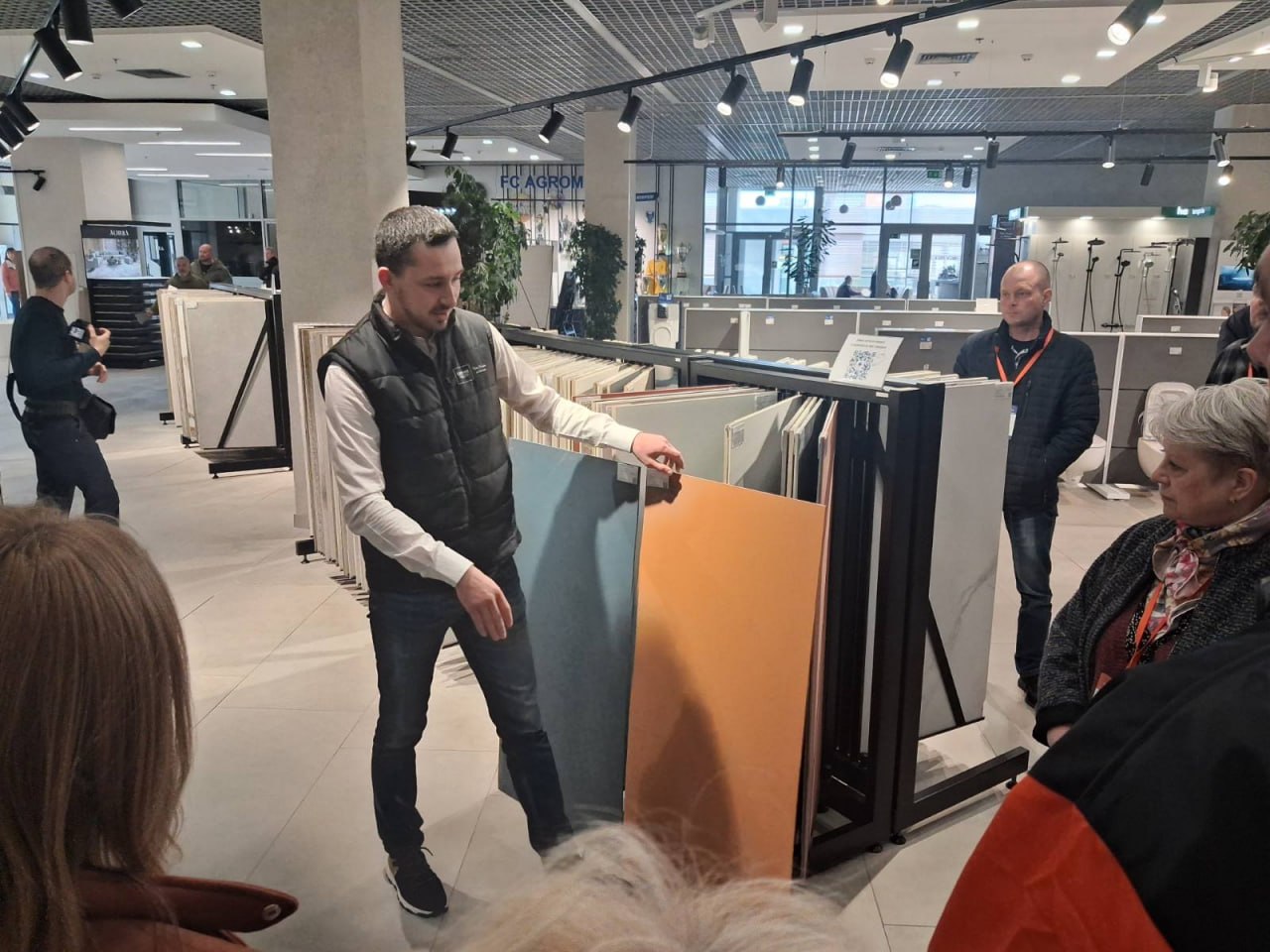 Перший день заходу розпочався на локації магазину «Агромат» (вул. Академіка Булаховського, 2). Після реєстрації та вступного слова від співзасновника компанії учасники ознайомилися з асортиментом магазину під час екскурсії. Насичена програма дня включала три теоретичні блоки: учасники поглибили знання з керамічної плитки та керамограніту, дізналися про можливості крупноформатних слябів від бренду Mirage, а також взяли участь у панельній дискусії щодо взаємодії майстра з продавцем та світових трендів галузі.