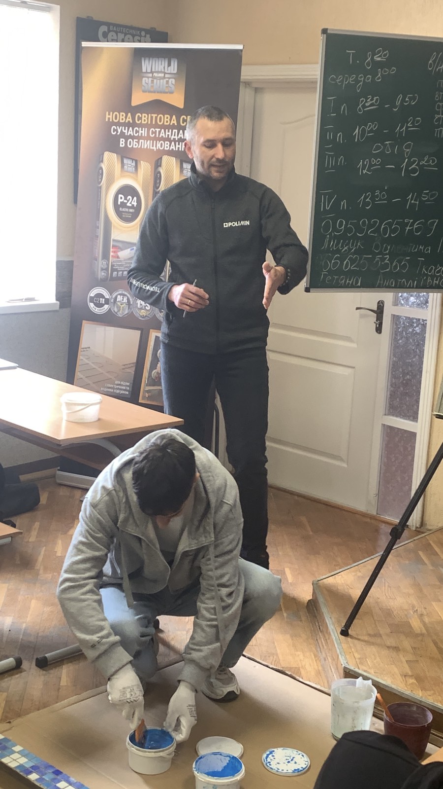 15.04.2026 пан Ігор захоплююче розказав і показав властивості матеріалів для виконання робіт за професією «лицювальник-плиточник».