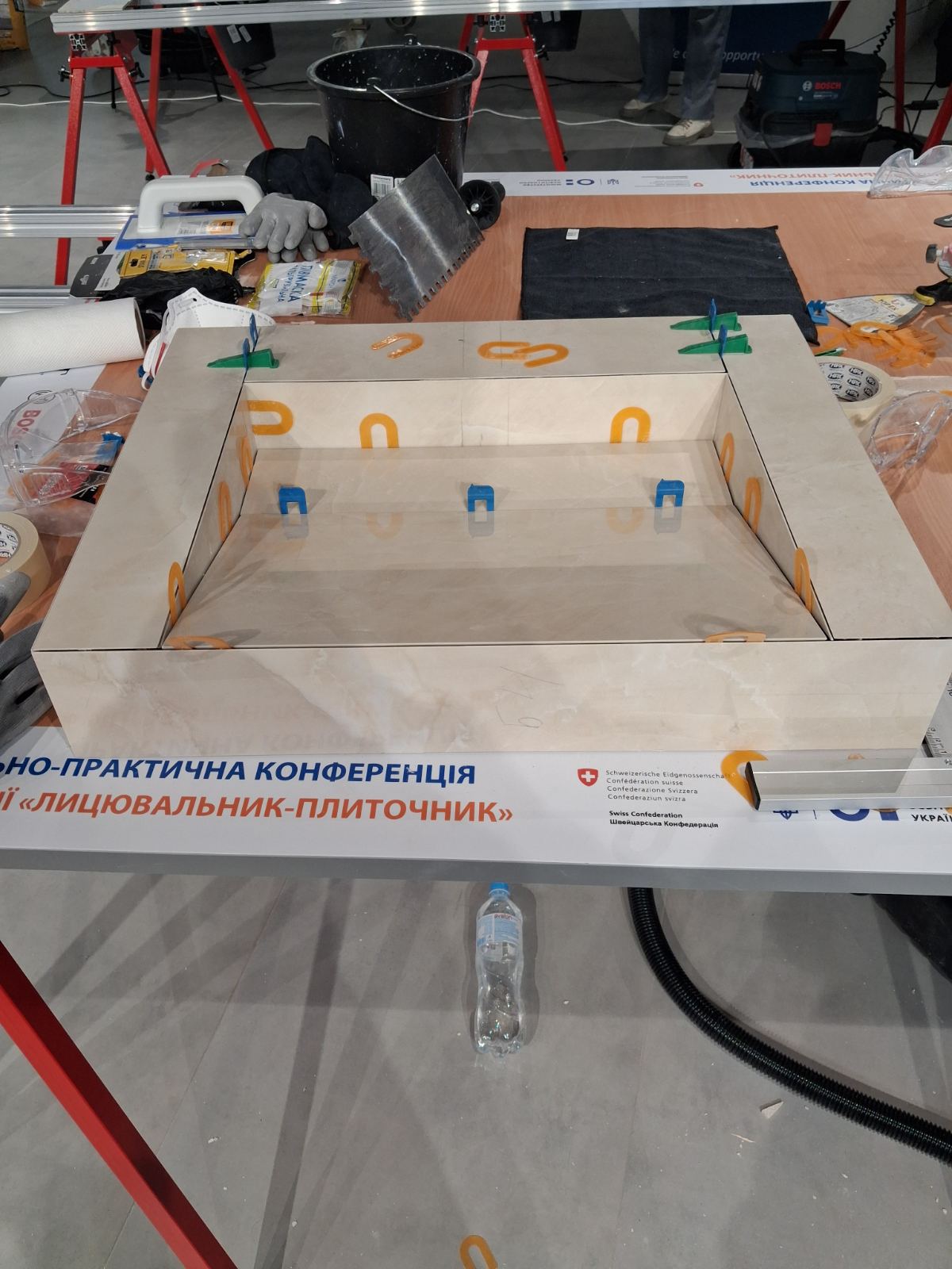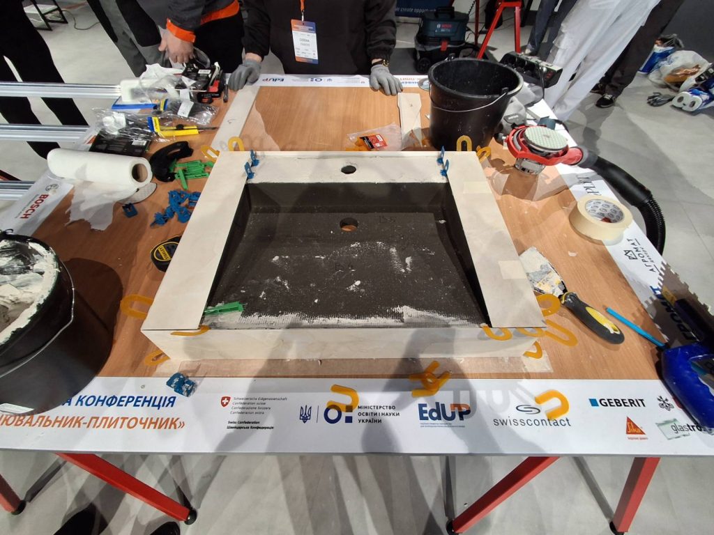 Зранку учасники опрацювали техніки роботи з крупноформатною плиткою — підйом, підготовку поверхонь, формування та різання.